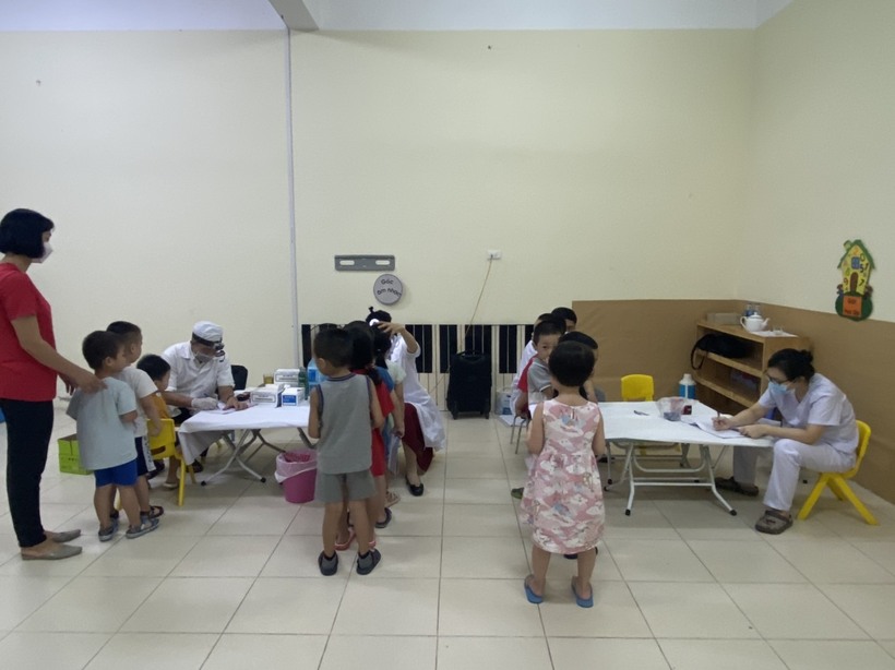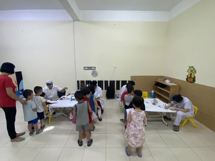Sau đây là một số hình ảnh trong buổi khám sức khỏe cho học sinh trường mầm non Tuổi Hoa:
