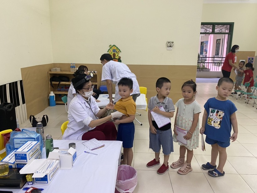 Thực hiện kế hoạch năm học, đảm bảo các quy định về chăm sóc giáo dục trẻ, ngày 28/9/2022 nhà trường tổ chức khám sức khỏe cho toàn bộ học sinh của trường với đầy đủ các chuyên khoa tai mũi họng, kiểm tra tim phổi và một số bệnh liên quan đến đường hô hấp, răng miệng, da liễu.....
