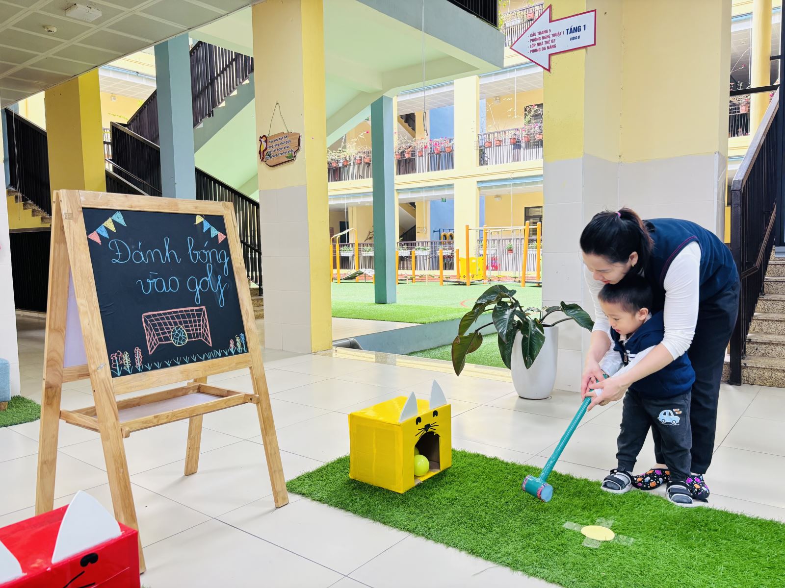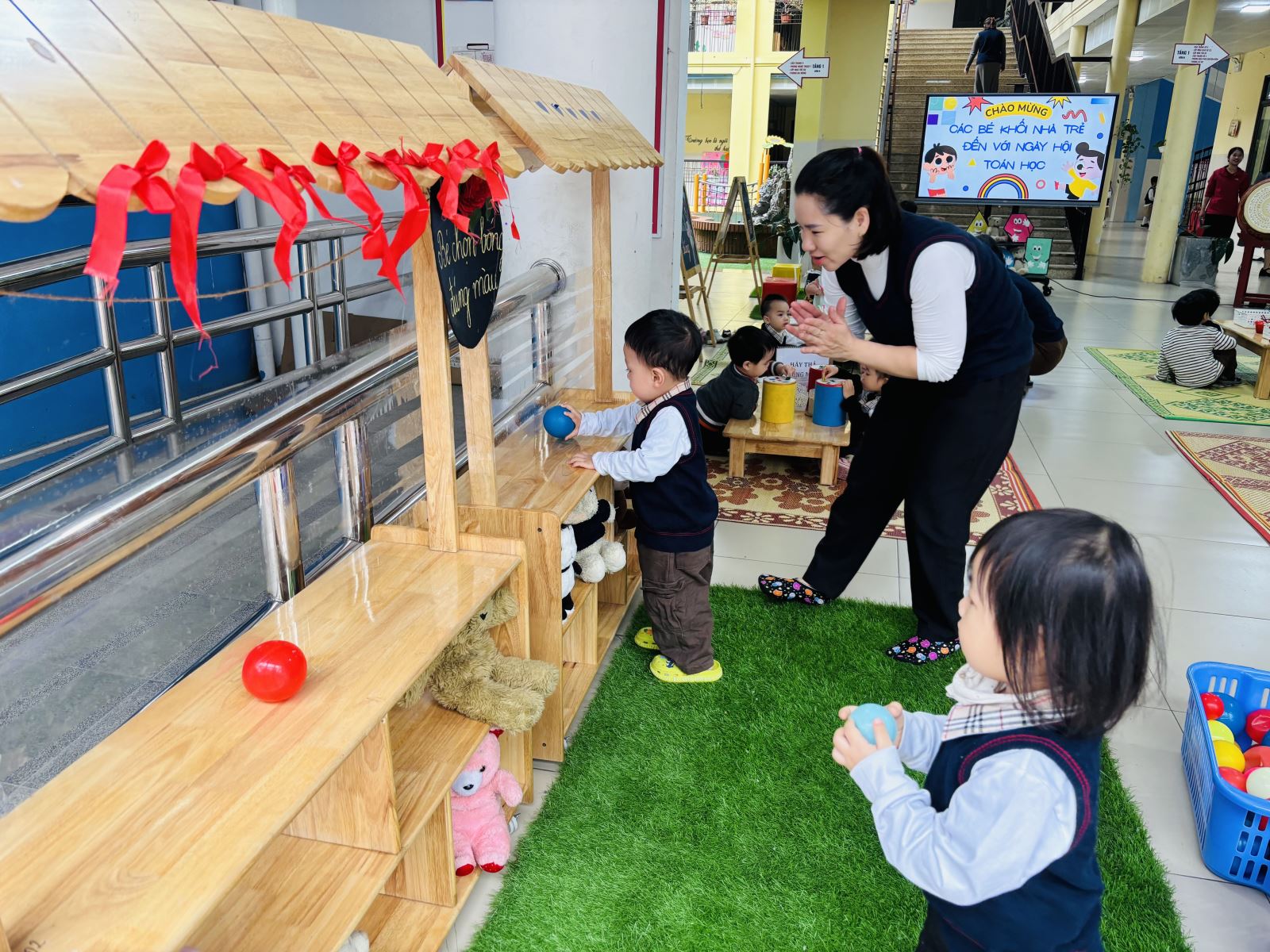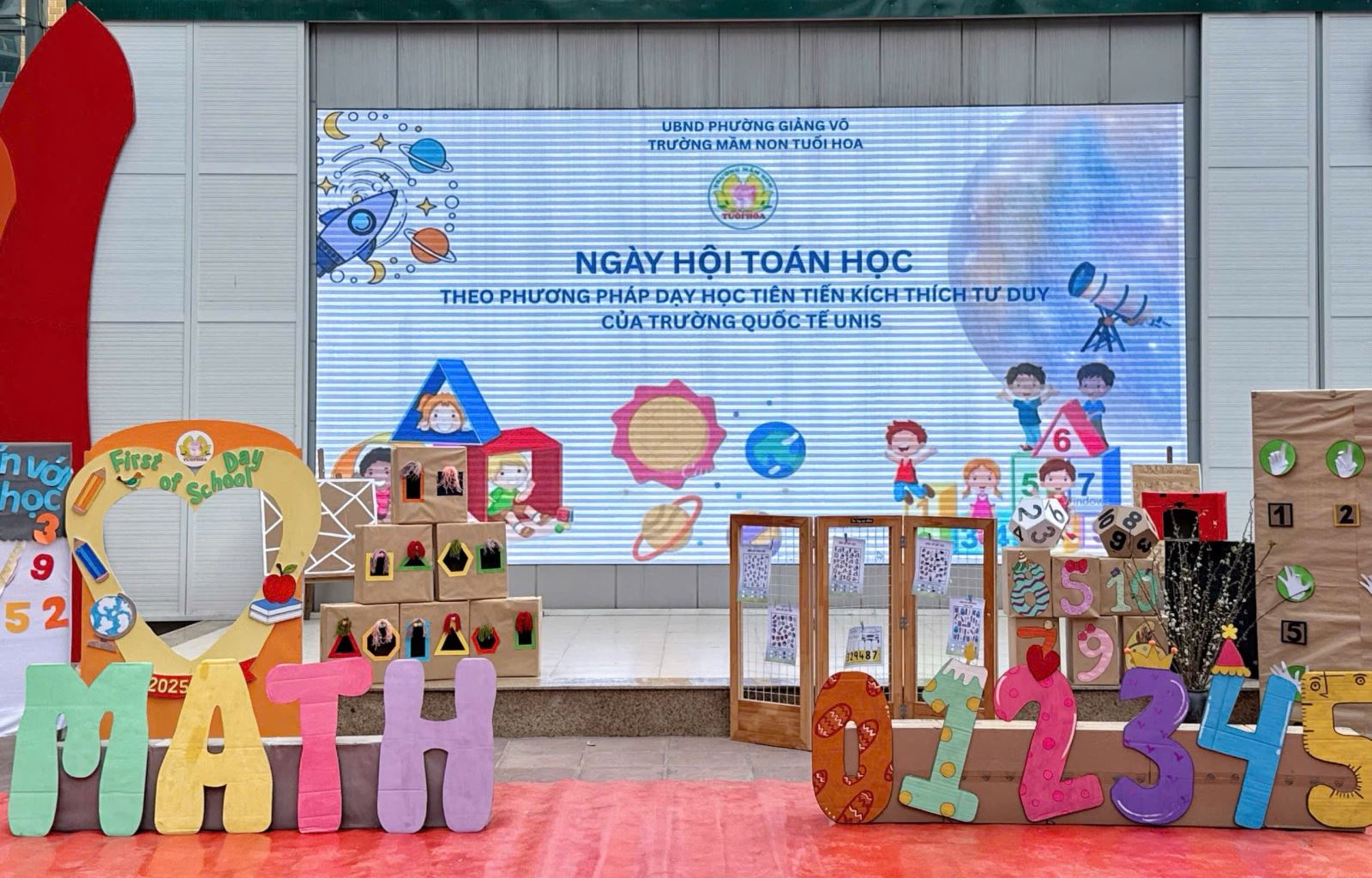 Hôm nay, các bé lớp D2 rất vui khi được tham gia Ngày hội Toán học của trường. Dưới sự hướng dẫn của cô giáo, các con được làm quen với những nguyên vật liệu, hình và màu sắc thông qua các trò chơi đơn giản, sinh động. Các bé hào hứng xếp hình, đánh bóng vào golf và tham gia trò chơi ghép số trong tiếng cười rộn ràng. Ngày hội không chỉ giúp trẻ bước đầu làm quen với toán học mà còn rèn luyện sự tập trung, khả năng quan sát và tinh thần hợp tác. Đây thực sự là một hoạt động bổ ích, mang lại niềm vui và hứng thú học tập cho các bé lớp D2.