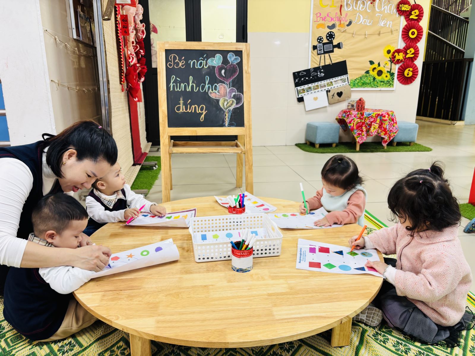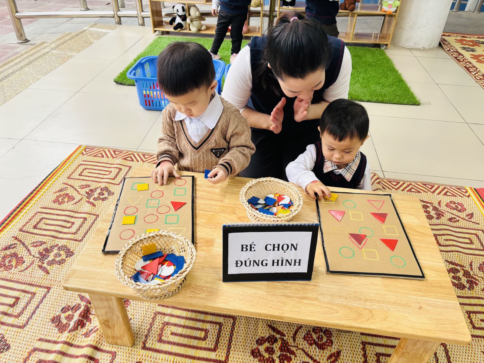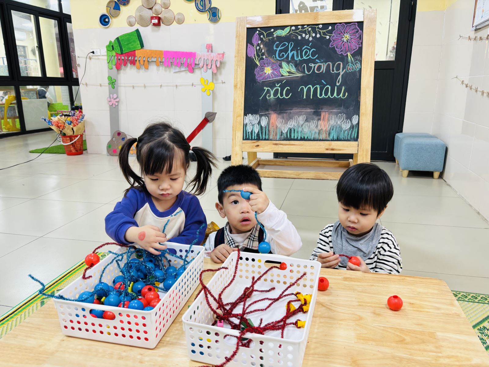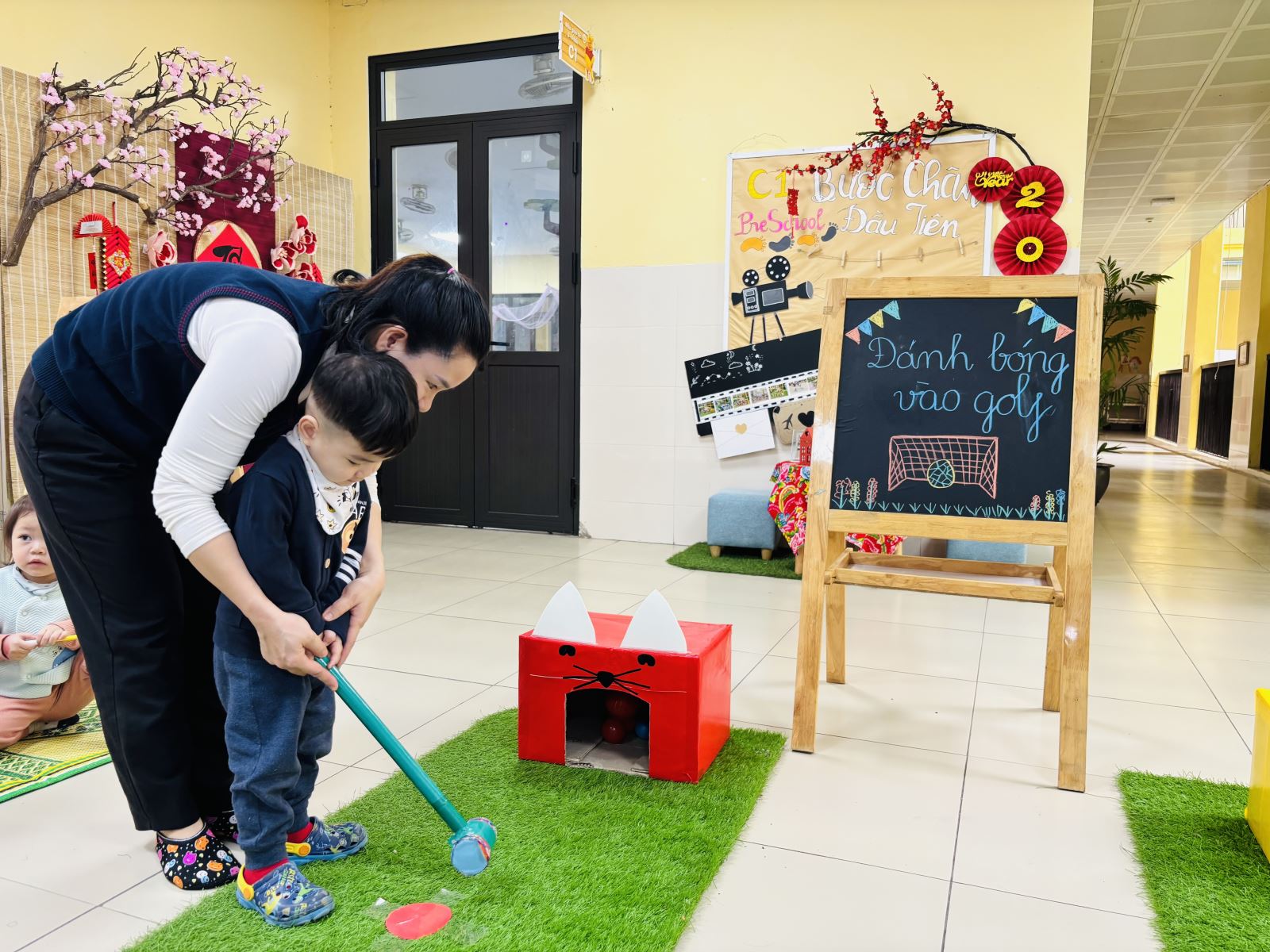 Hôm nay, các bé lớp D2 rất vui khi được tham gia Ngày hội Toán học của trường. Dưới sự hướng dẫn của cô giáo, các con được làm quen với những nguyên vật liệu, hình và màu sắc thông qua các trò chơi đơn giản, sinh động. Các bé hào hứng xếp hình, đánh bóng vào golf và tham gia trò chơi ghép số trong tiếng cười rộn ràng. Ngày hội không chỉ giúp trẻ bước đầu làm quen với toán học mà còn rèn luyện sự tập trung, khả năng quan sát và tinh thần hợp tác. Đây thực sự là một hoạt động bổ ích, mang lại niềm vui và hứng thú học tập cho các bé lớp D2.