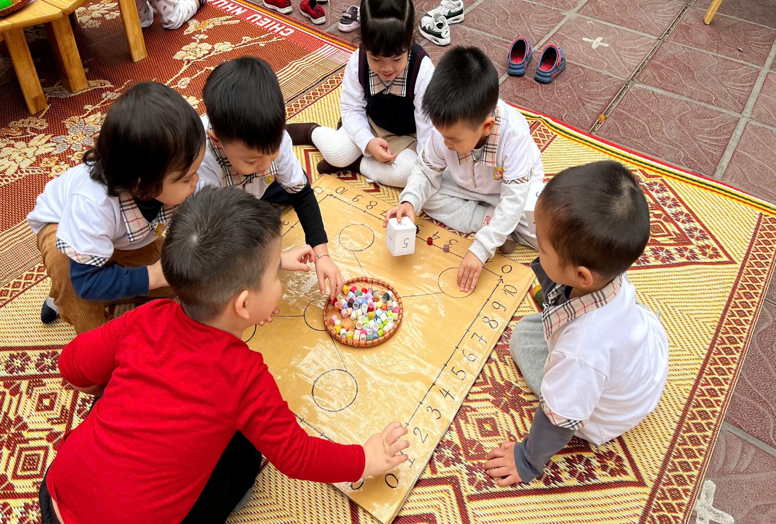 Hình ảnh các bé chơi với quân xúc xắc
