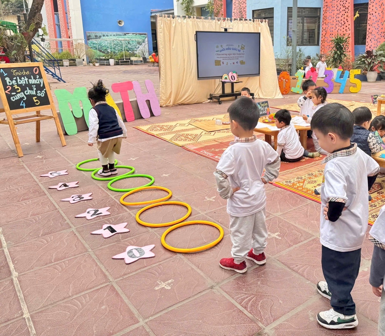 Hình ảnh các bé chơi bật nhảy với chữ số