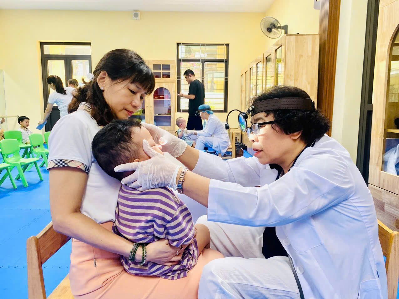 Hình ảnh các con được bác sĩ khám Tai- Mũi-Họng