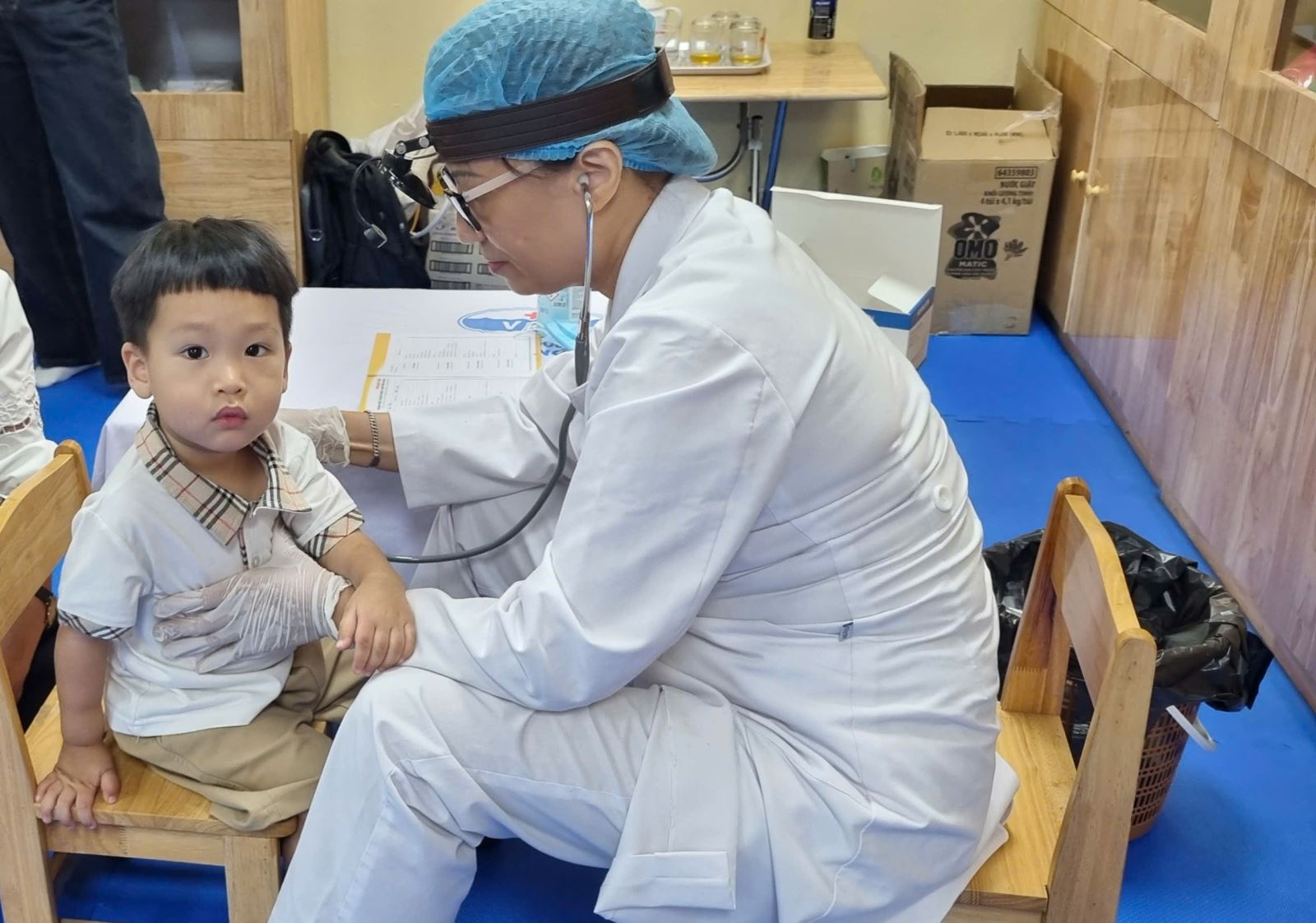 Hình ảnh các con được bác sĩ khám Tim-Phổi