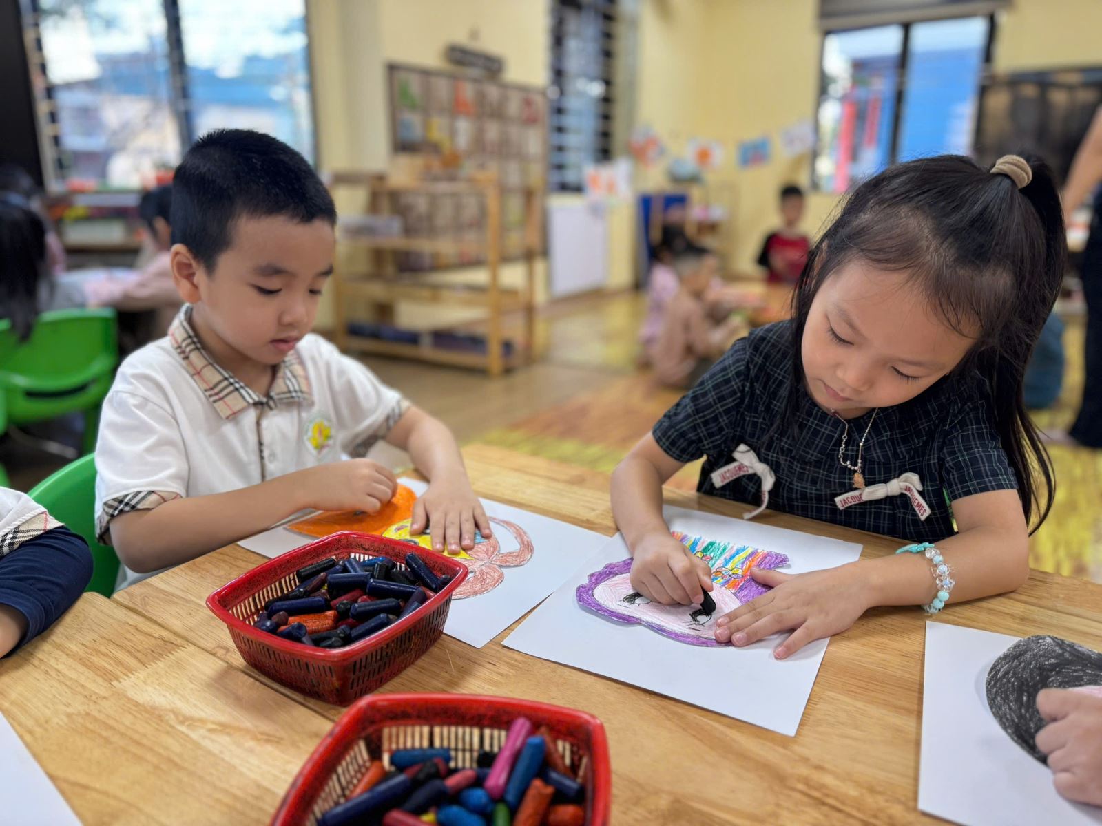 Các bạn nhỏ say sưa để tạo món quà đặc biệt dành tặng cô