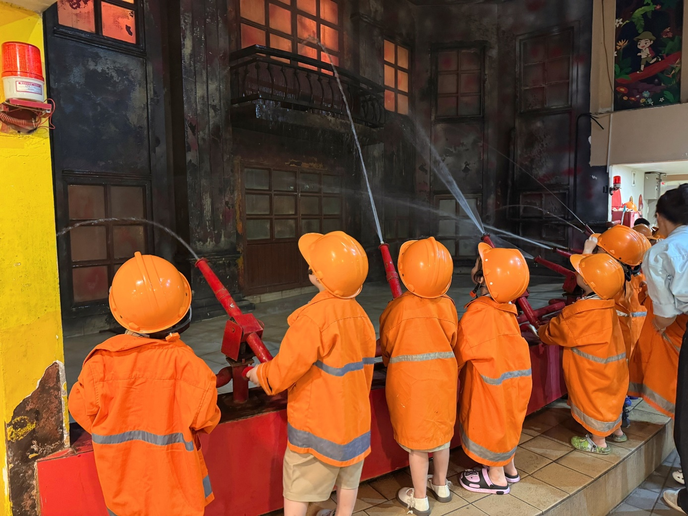 Các bé hào hứng thử sức trong vai trò lính cứu hỏa dũng cảm