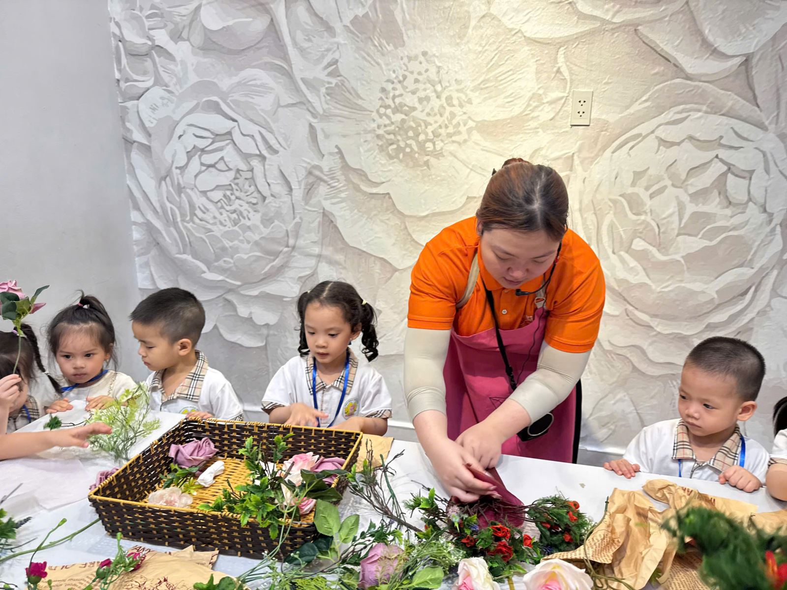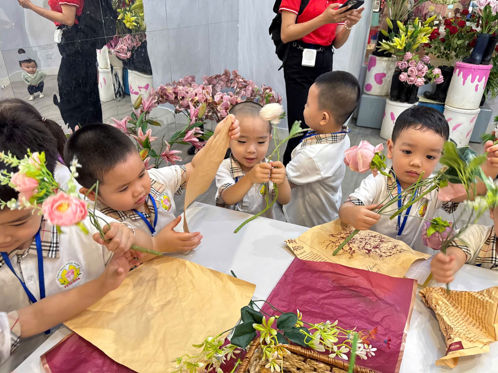 Các bạn nhỏ trải nghiệm cắm hoa
