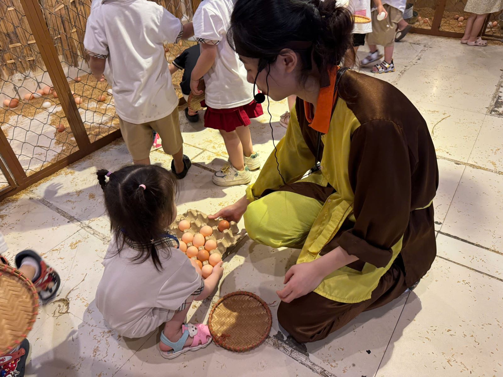 Hóa thân thành những bác nông dân thu hoạch trứng gà