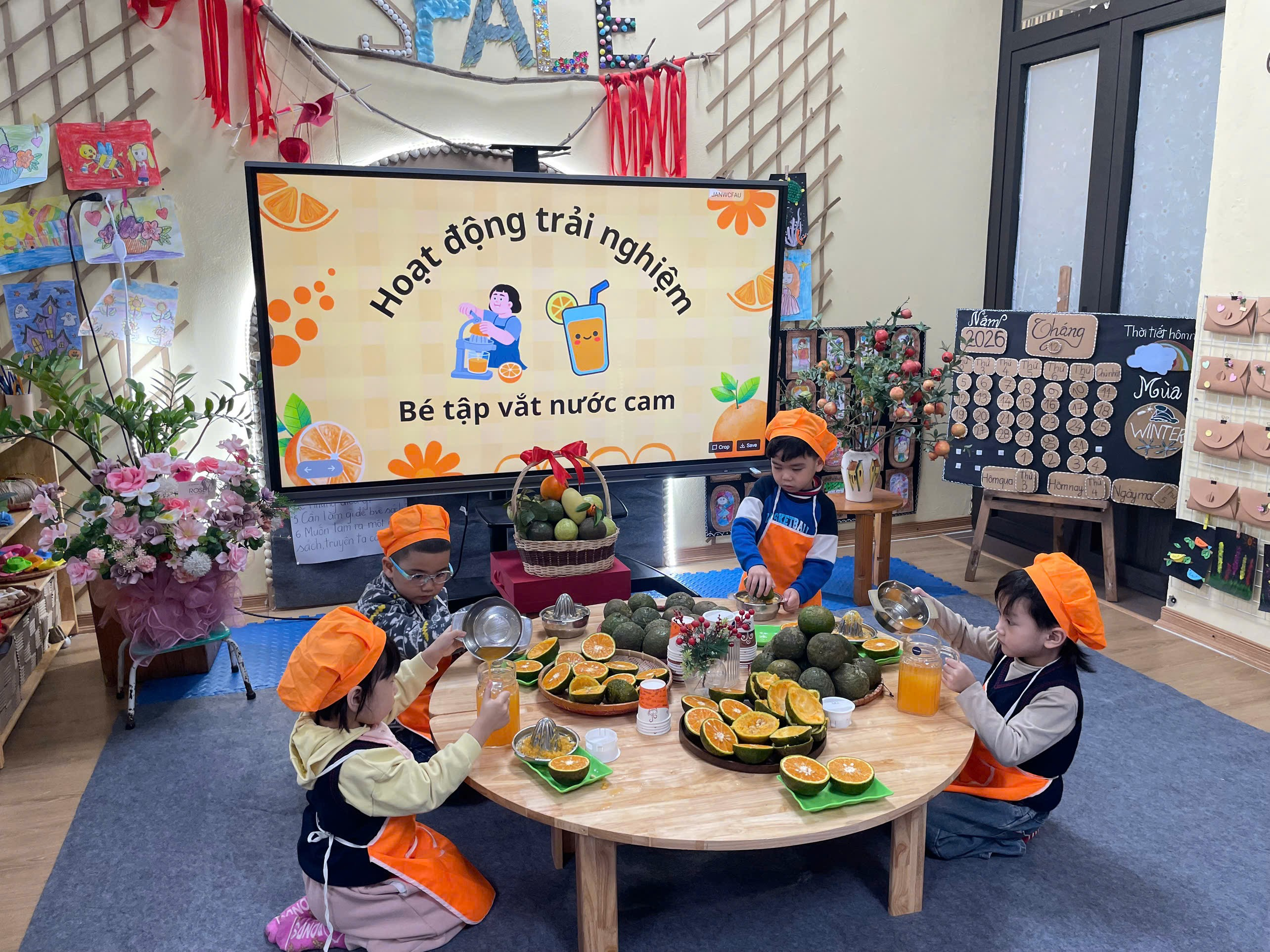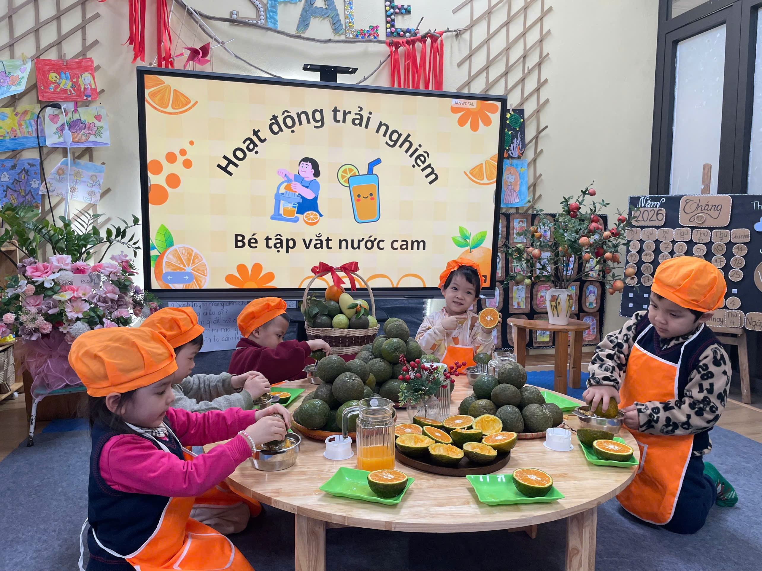 Nhằm tạo cơ hội cho trẻ được học bằng trải nghiệm thực tế, hôm nay các bé lớp MNG B3 đã tham gia hoạt động trải nghiệm “Vắt nước cam” .Trong hoạt động, các con được cô hướng dẫn rửa cam, cắt cam ,tự tay vắt nước cam và thưởng thức thành quả của mình. Dưới sự quan sát và hỗ trợ của giáo viên, các bé rất tập trung, khéo léo và mạnh dạn khi tham gia từng bước của hoạt động.