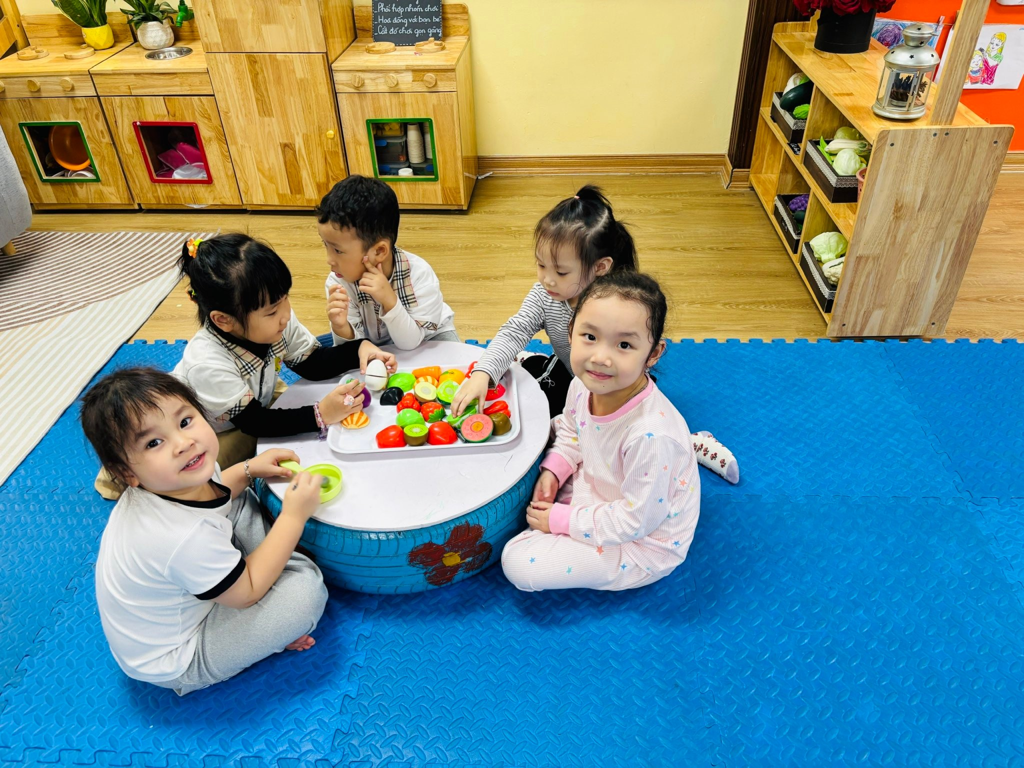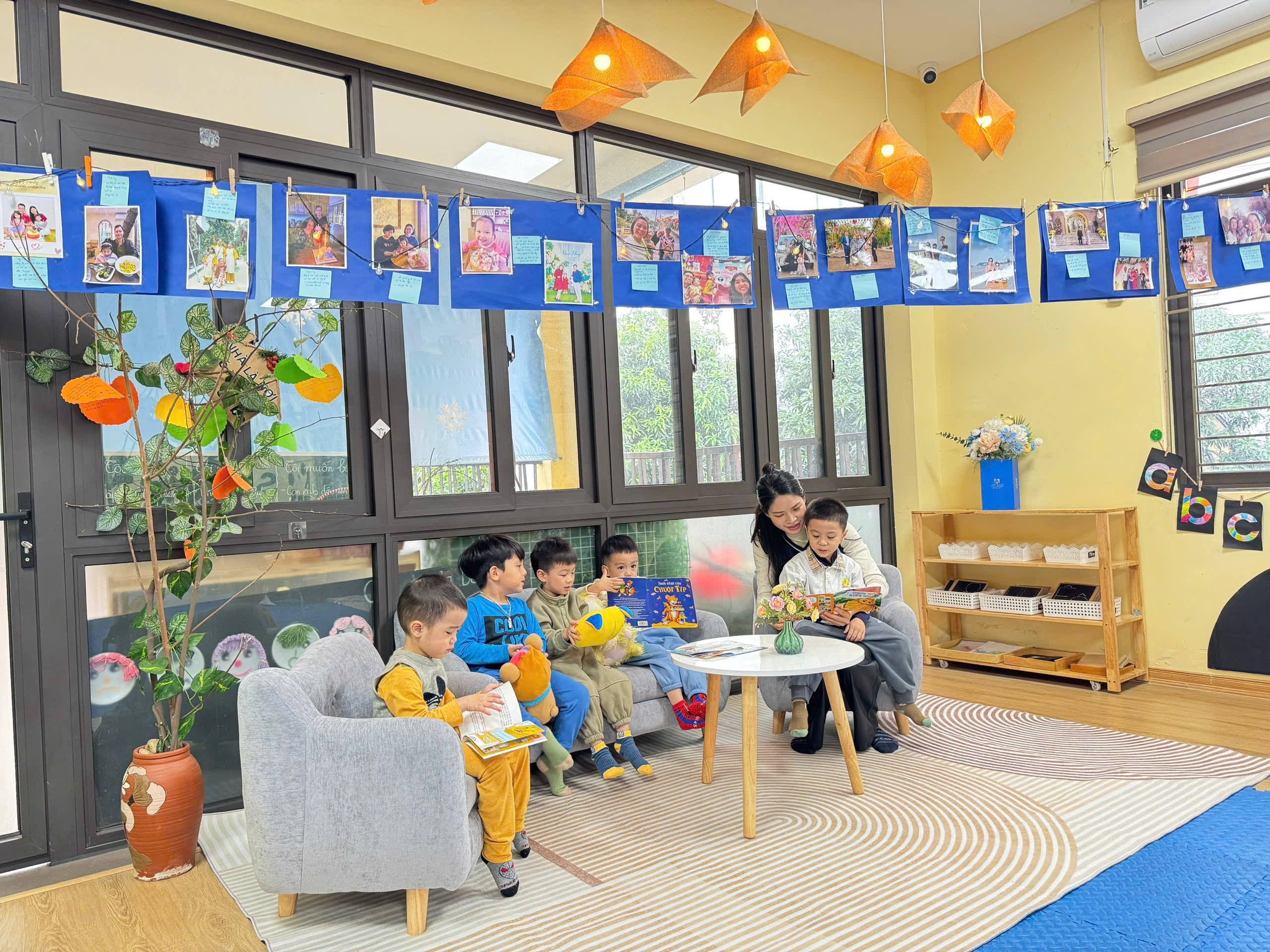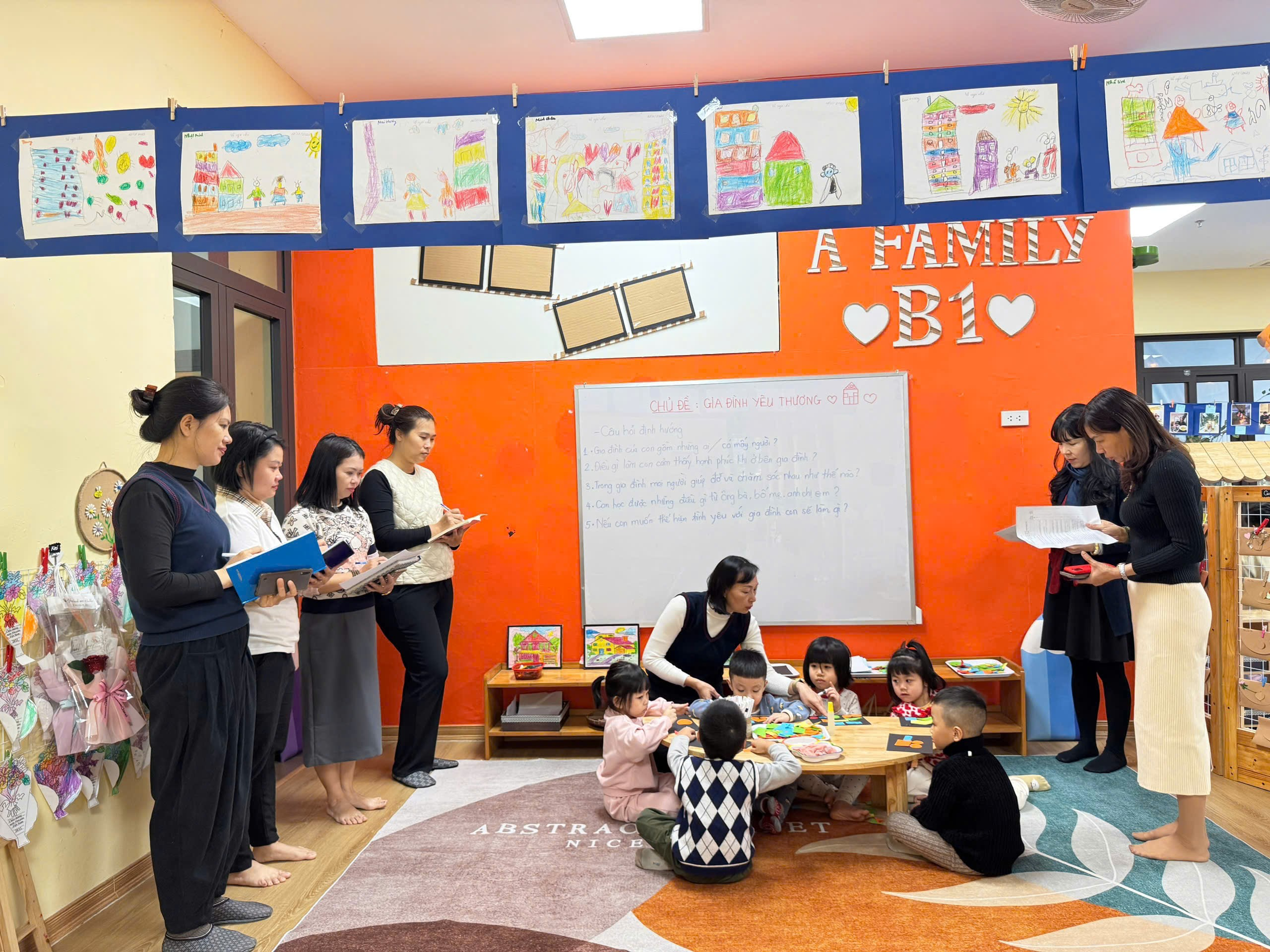 Điểm nổi bật của lớp B1 chính là sự thay đổi môi trường học tập: không gian lớp học được sắp xếp linh hoạt, gần gũi, tạo điều kiện để các con tham gia hoạt động một cách tự nhiên và hứng thú. Thay vì chỉ tiếp nhận kiến thức một chiều, các con được khuyến khích đặt câu hỏi, tìm tòi và tự mình trải nghiệm.