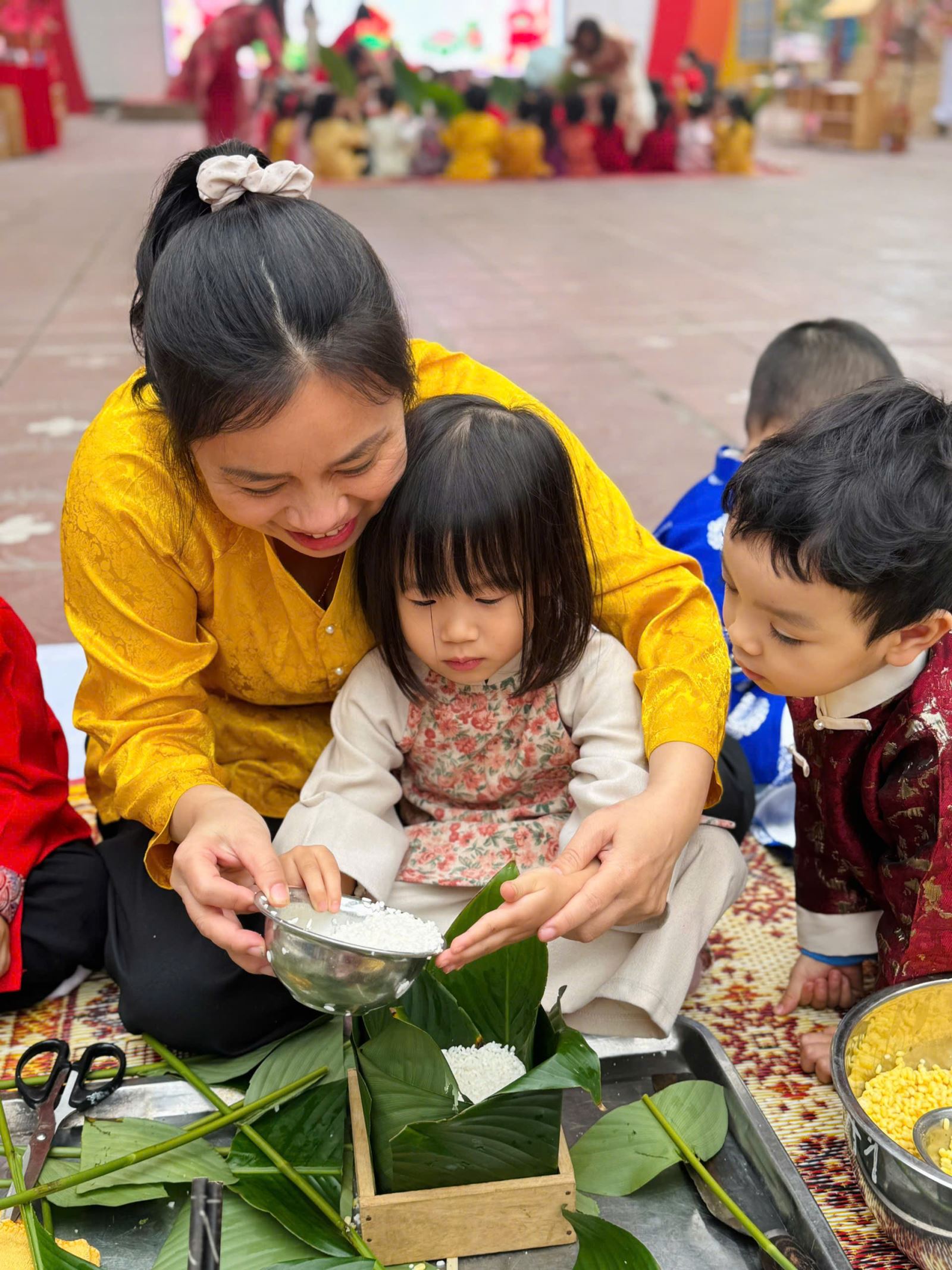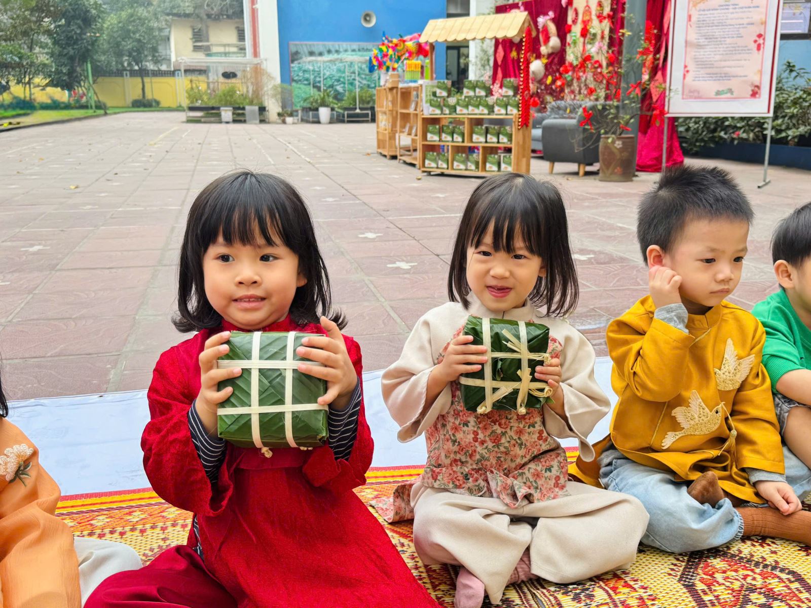 Hòa chung không khí rộn ràng đón Tết cổ truyền, lớp C2 đã tham gia ngày hội gói bánh chưng và hội chợ xuân với nhiều hoạt động sôi nổi và ý nghĩa. Các bạn học sinh được trực tiếp trải nghiệm gói bánh chưng truyền thống, từ chuẩn bị nguyên liệu đến hoàn thành những chiếc bánh vuông vắn, đậm đà hương vị ngày Tết. Bên cạnh đó, hội chợ xuân với các gian hàng và trò chơi vui nhộn đã mang đến không khí tươi vui, ấm áp, giúp các con thêm gắn kết và có nhiều kỷ niệm đẹp bên các cô và bạn bè. Ngày hội không chỉ đem lại niềm vui mà còn góp phần giáo dục học sinh về nét đẹp văn hóa Tết cổ truyền của dân tộc.