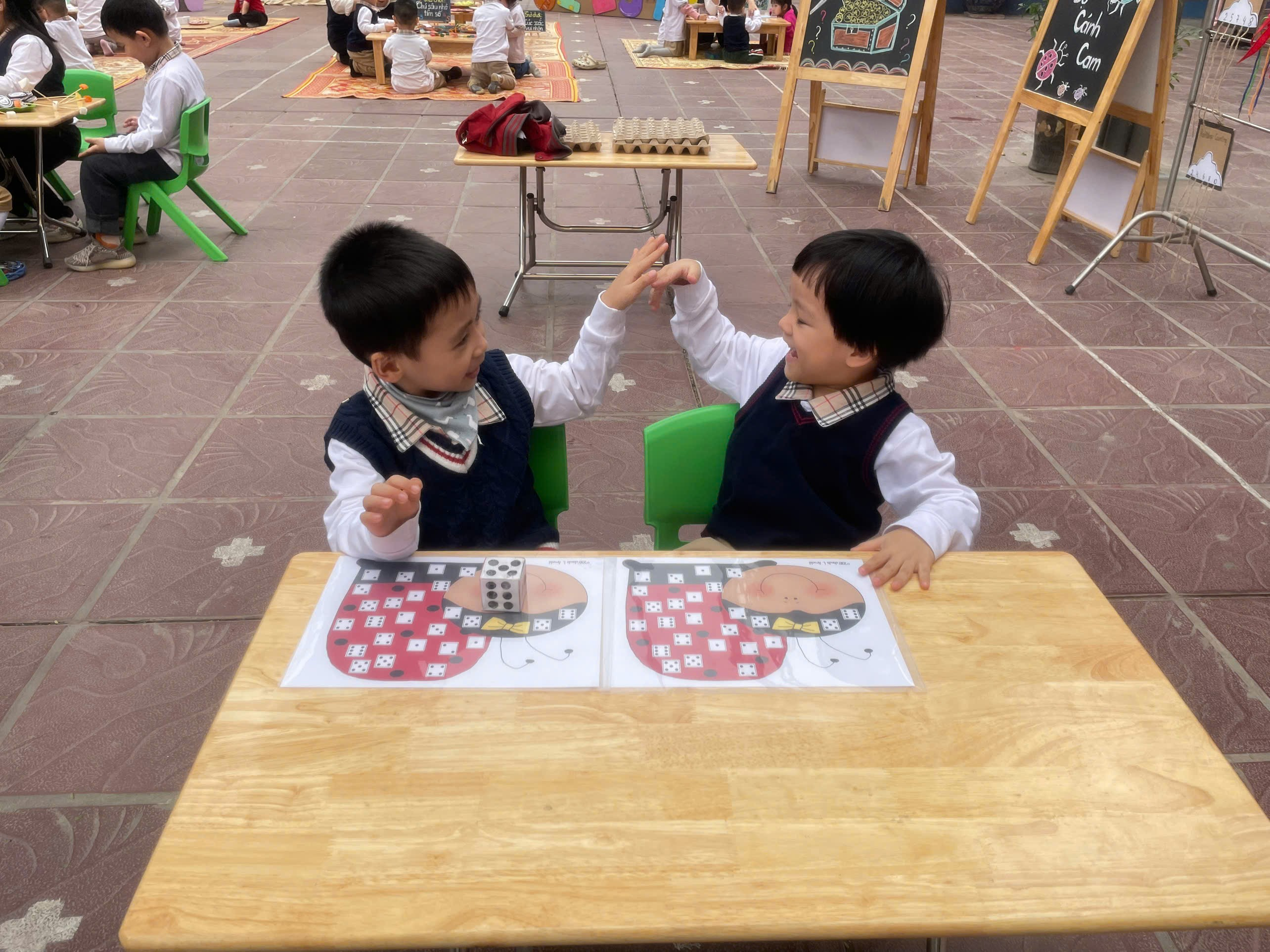 Ngày hội toán học được thiết kế theo hướng học mà chơi – chơi mà học, thông qua các trò chơi toán học đa dạng, sinh động như: nhận biết số lượng, so sánh, phân loại, tư duy logic và giải quyết tình huống. Dưới sự hướng dẫn của giáo viên, trẻ được chủ động khám phá, suy nghĩ và đưa ra câu trả lời của riêng mình, từ đó kích thích khả năng tư duy, ghi nhớ và phản xạ nhanh.