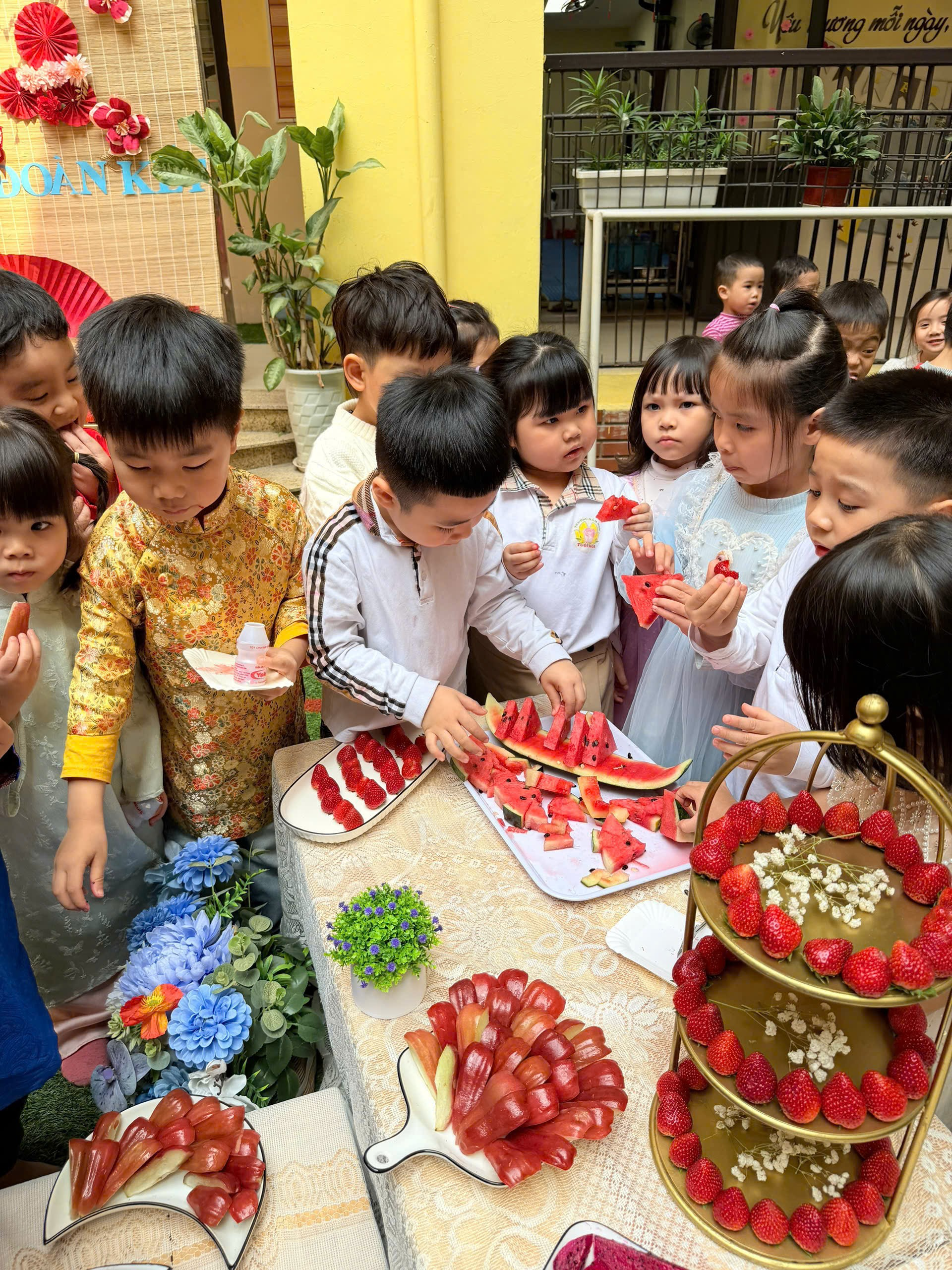 Buổi tiệc không chỉ mang đến niềm vui mà còn giúp các con thêm tự tin, mạnh dạn trong giao tiếp. Những khoảnh khắc hồn nhiên, rạng rỡ của các bé chắc chắn sẽ là kỷ niệm thật đẹp trong mùa xuân này.