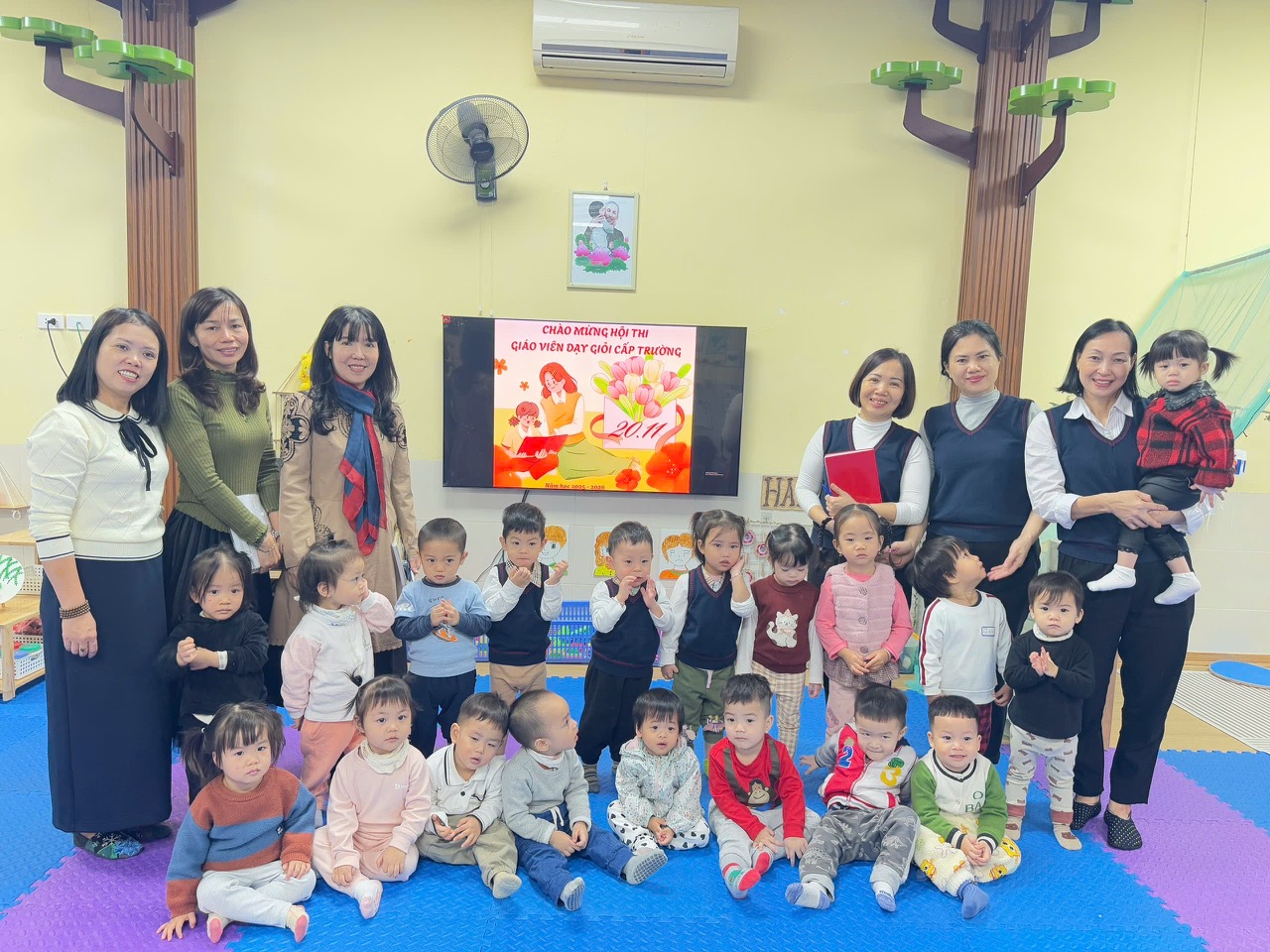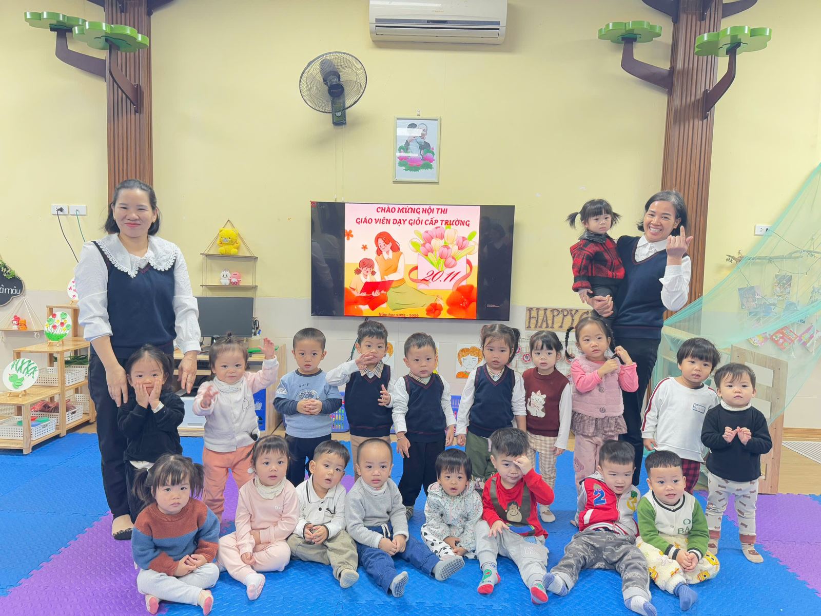 Hòa chung trong không khí chào mừng ngày Nhà giáo Việt Nam, lớp nhà trẻ D2 tham gia hội thi 'Xây dựng môi trường lấy trẻ làm trung tâm