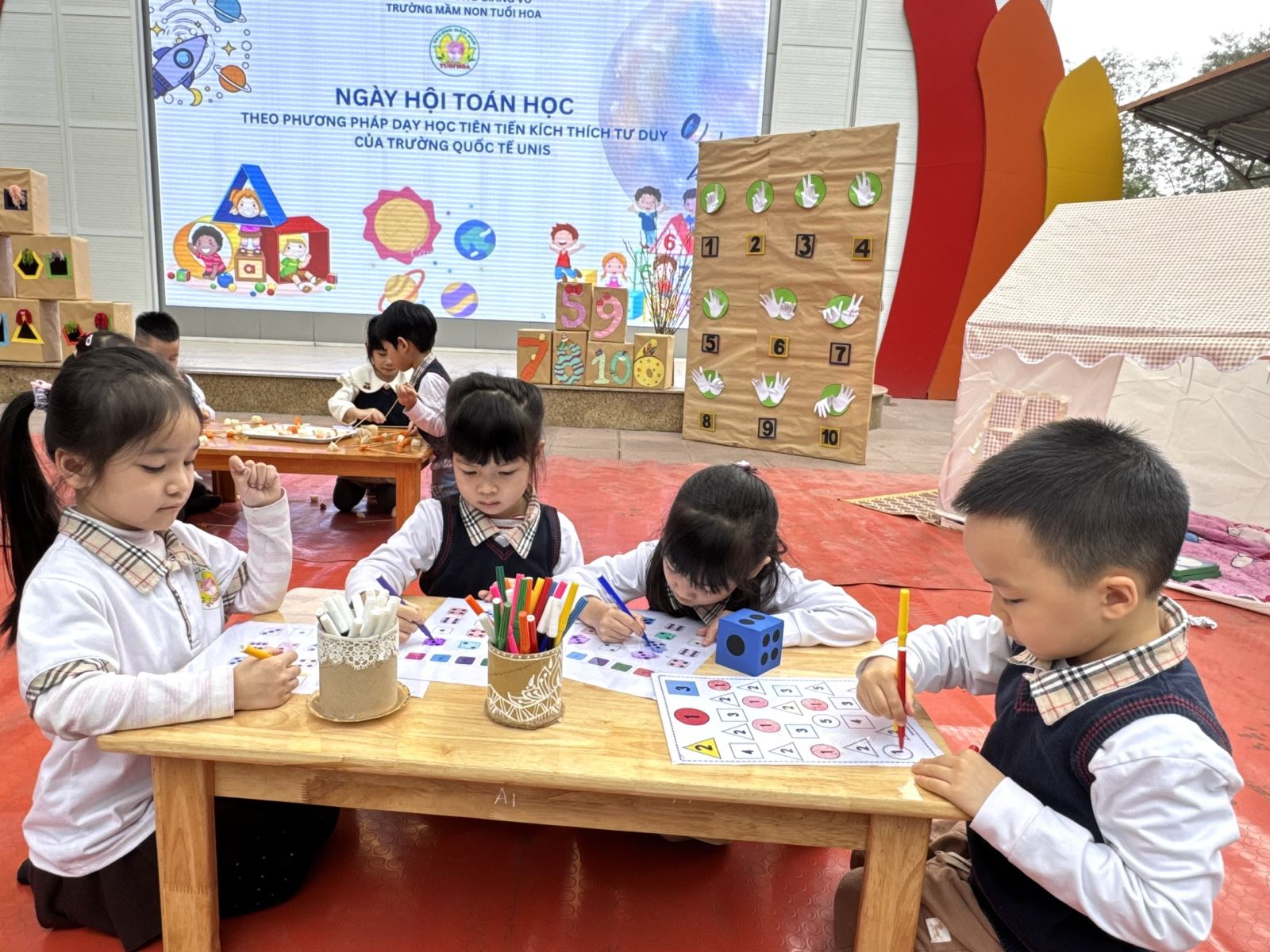 Ngày hội Toán học của các bé lớp mẫu giáo lớn A3 được tổ chức sôi nổi với nhiều hoạt động hấp dẫn, ứng dụng phương pháp học tập kích thích tư duy cho trẻ mầm non.