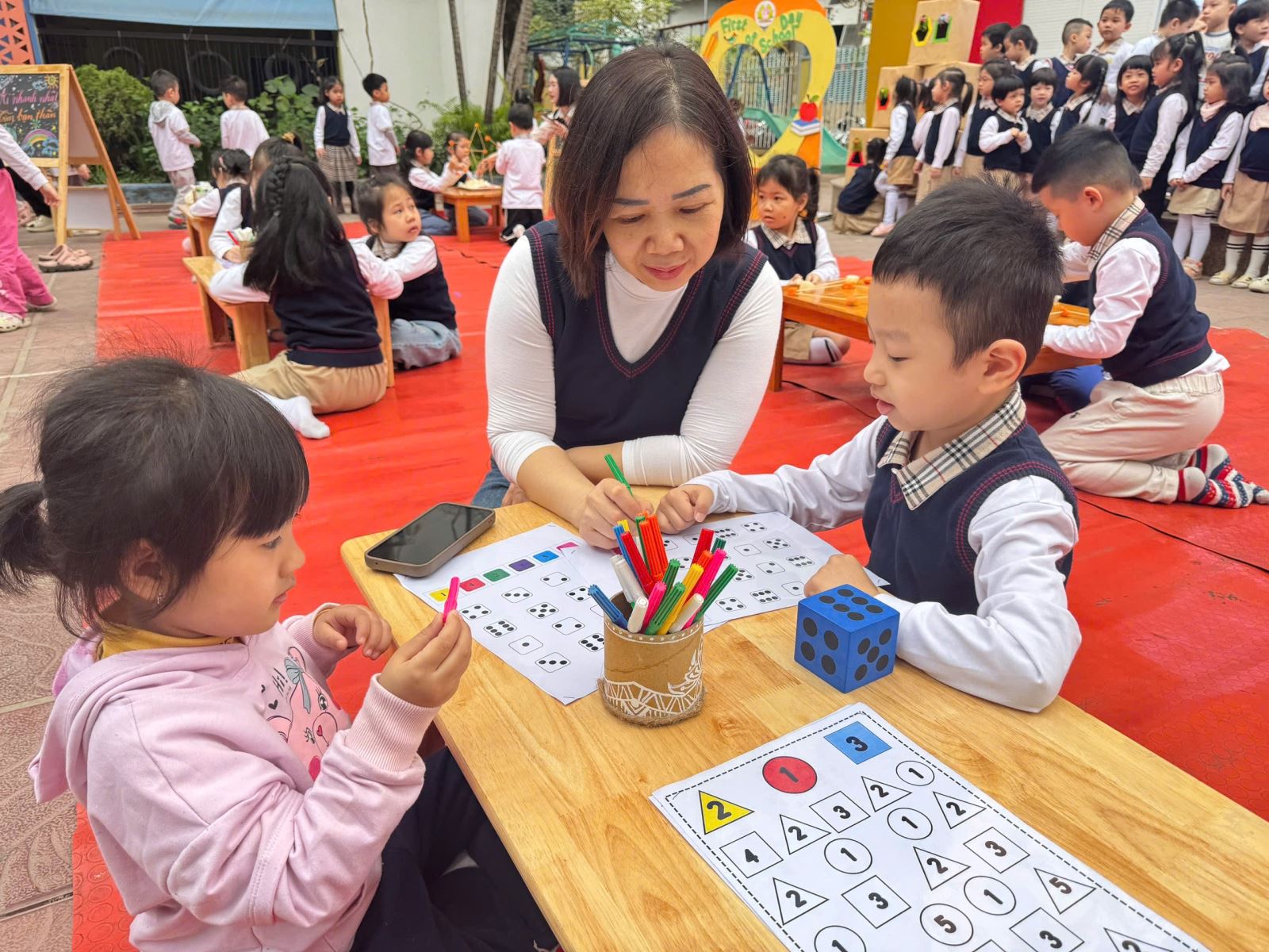 Với thông điệp “Mang kiến thức Toán học đến với trẻ mầm non một cách nhẹ nhàng, hấp dẫn và bổ ích thông qua các trò chơi”, ngày hội đã mở ra một không gian học tập sinh động, nơi Toán học không còn khô khan mà trở nên gần gũi, thân quen qua từng hoạt động trải nghiệm.