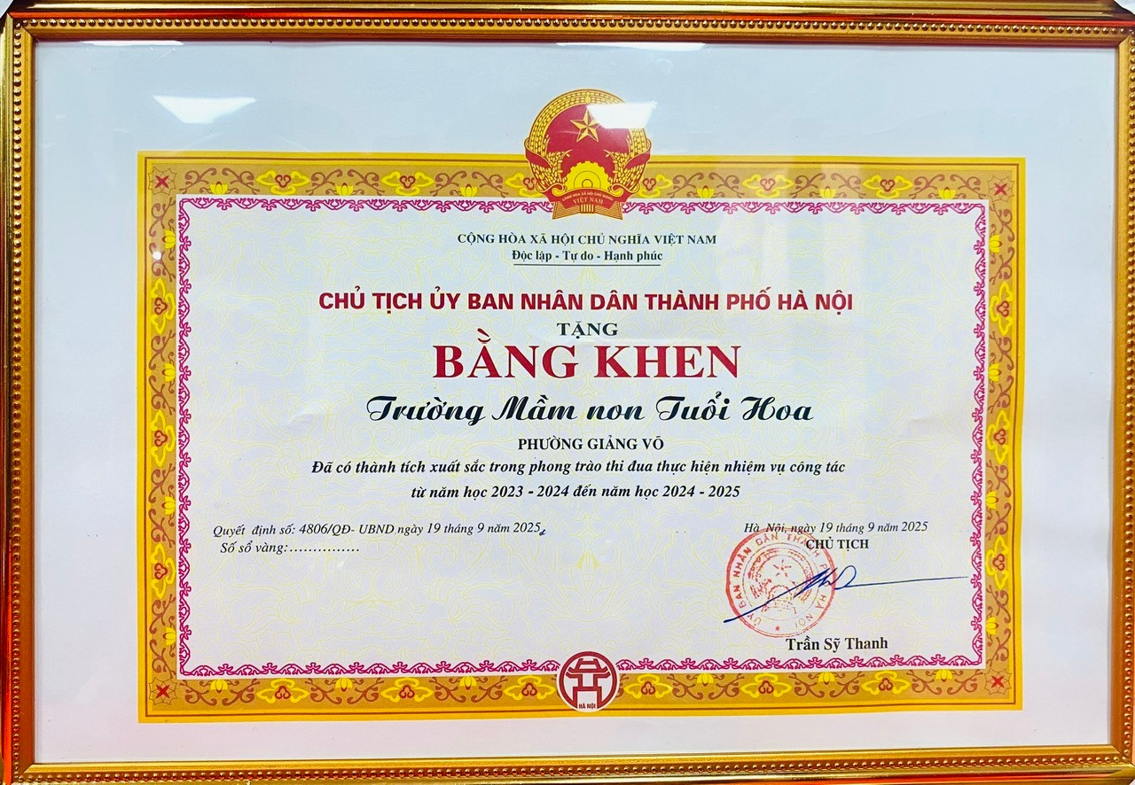 Niềm vui của Trường Mầm non Tuổi Hoa, Phường Giảng Võ Đón Nhận Danh Hiệu Cao Quý – Chào Mừng Ngày Nhà Giáo Việt Nam 20/11