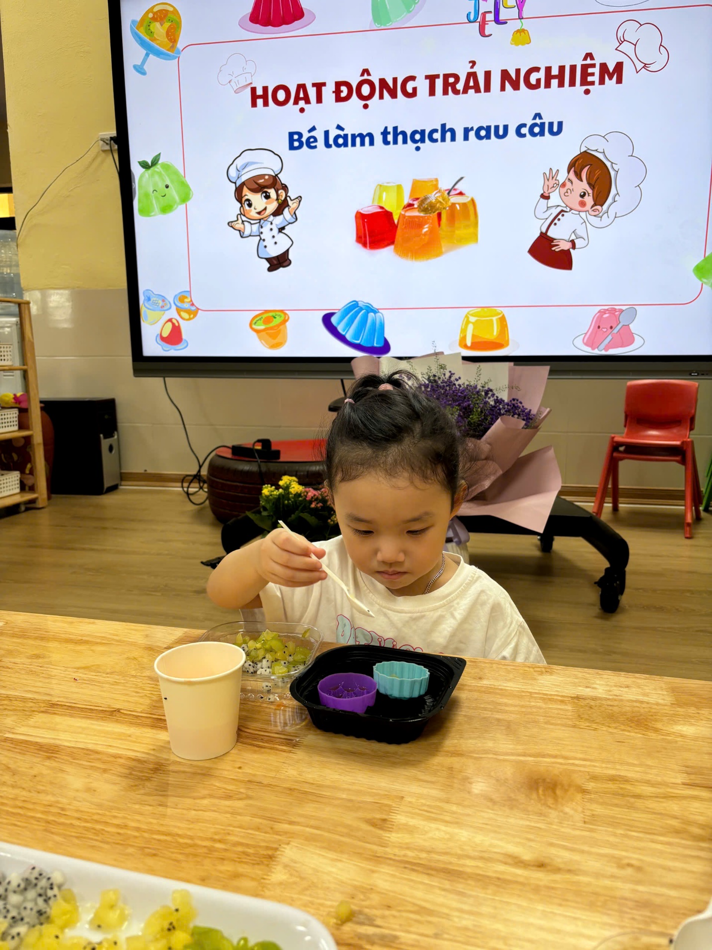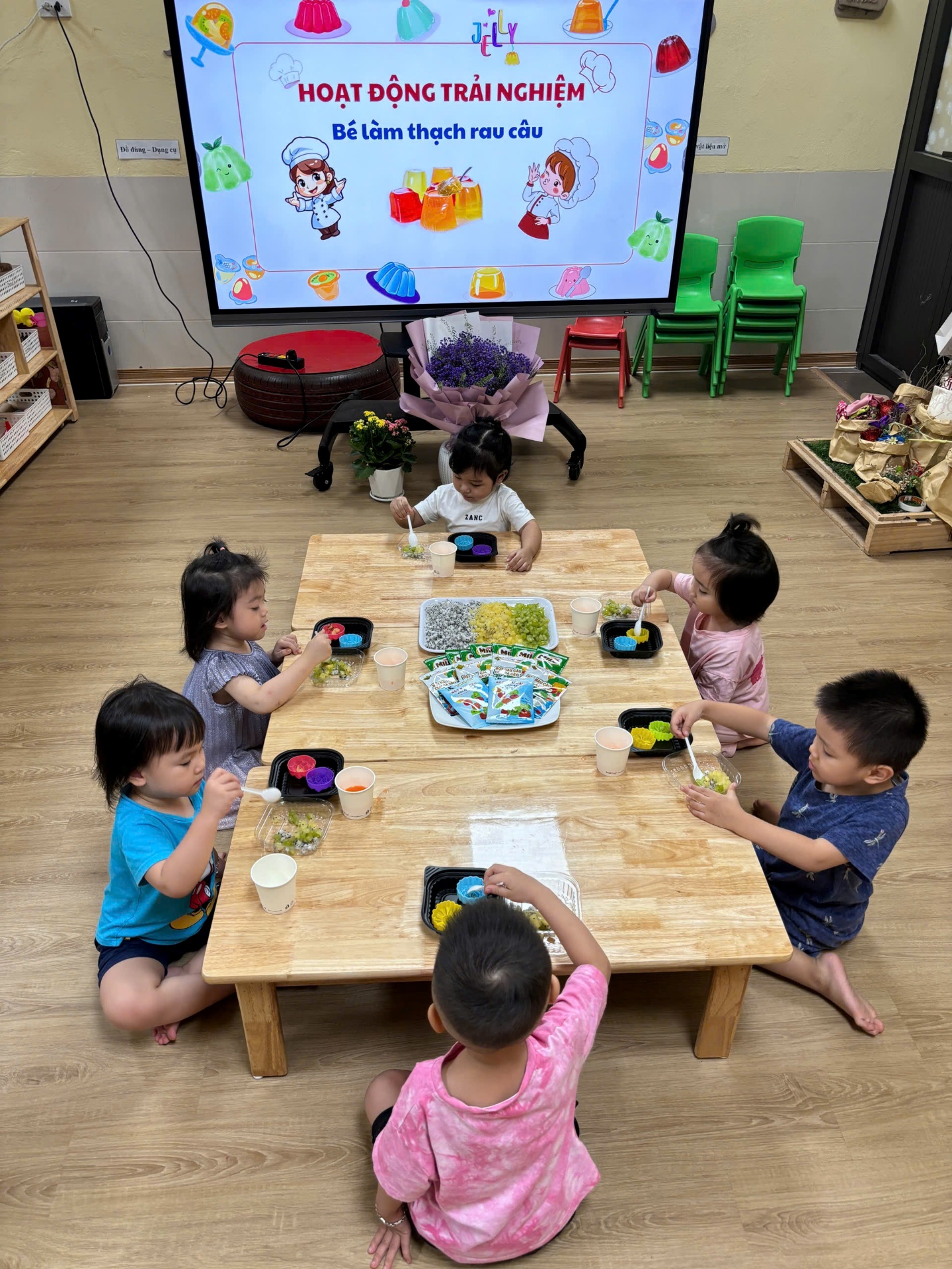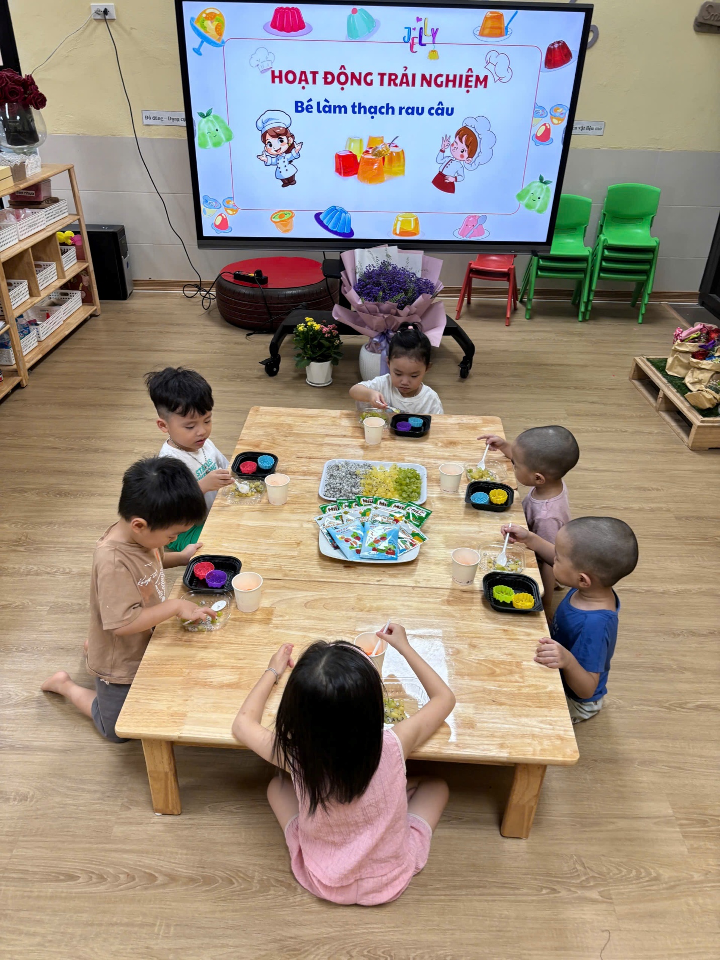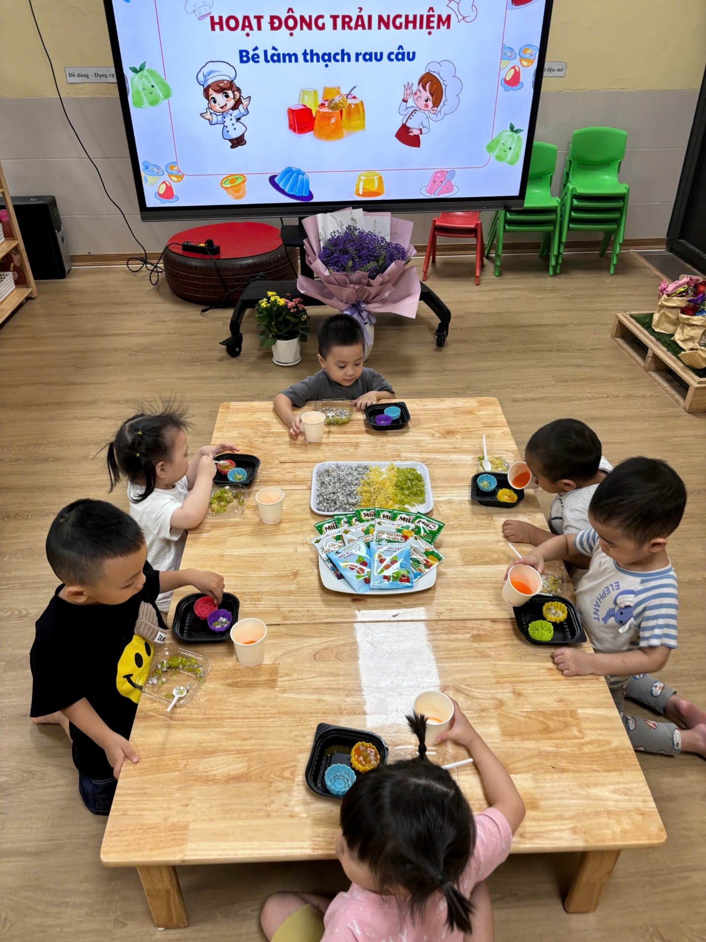 Trong tiết trời nắng nóng của mùa hè, thạch rau câu là món ăn phù hợp và yêu thích của tất cả mọi người. Hôm nay các bạn nhỏ lớp C1 cũng sẽ trổ tài làm những viên thạch để giải nhiệt mùa hè.