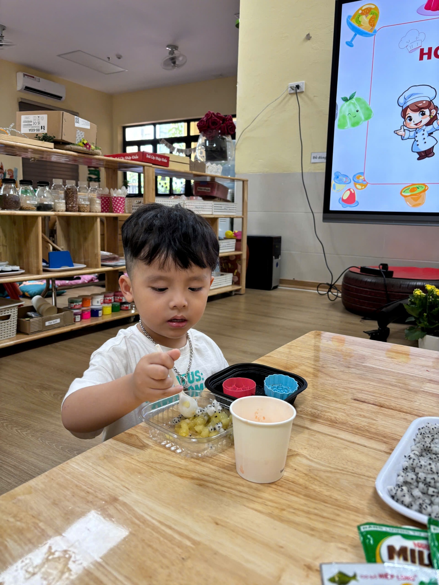 - Hoa quả hoặc hương vị bé thích (sữa dừa, socola, dâu,…)