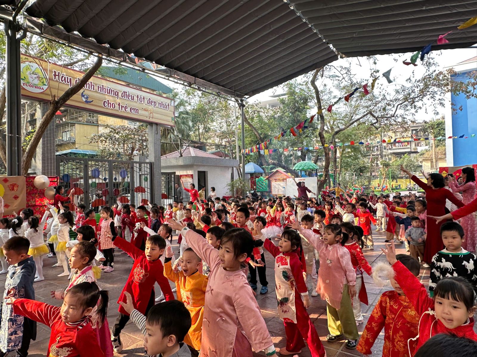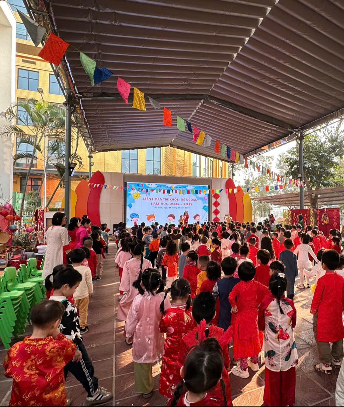 Dưới đây là một số hình ảnh của các con : Cô hiệu trưởng tuyên bố khai mạc chương trình Các bé đồng diễn flamost bài hát Việt Nam ơi Các bé khối nhỡ biểu diễn tiết mục " Every time we touch" Các em bé khối bé biểu diễn tiết mục " Little apple" Tiết mục của các anh chị khối lớn