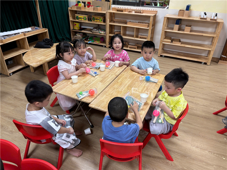 🎨 Bằng sự sáng tạo và khéo léo, các con đã sử dụng cốc giấy để làm cốc đựng bóng, và những que kem đã trở thành những chiếc cột bóng rổ mini do chính tay các bé tạo nên. Mỗi bạn nhỏ đều được tự tay hoàn thiện sản phẩm của riêng mình, mang đậm dấu ấn cá nhân.