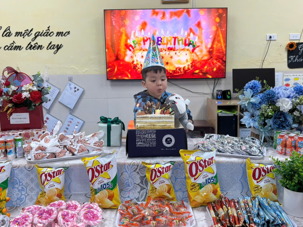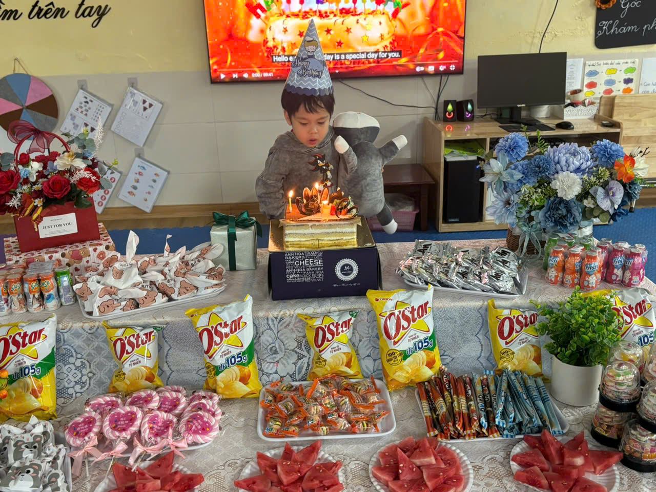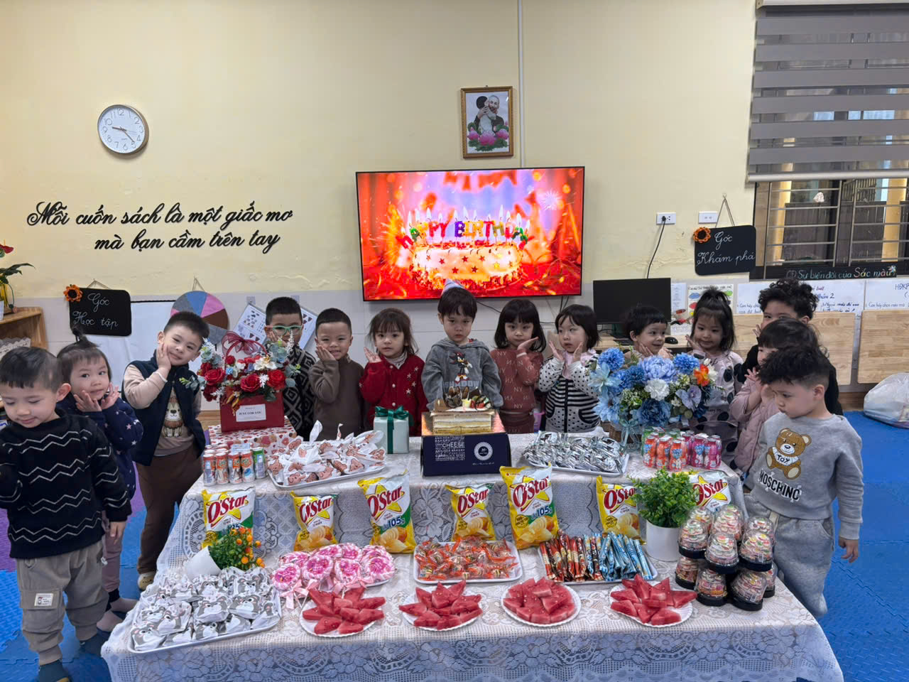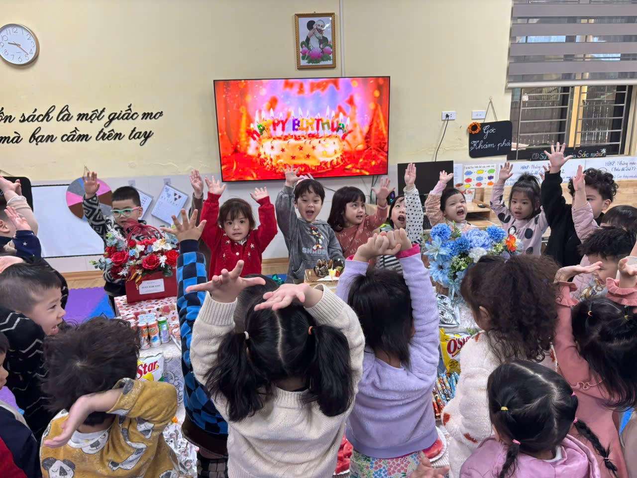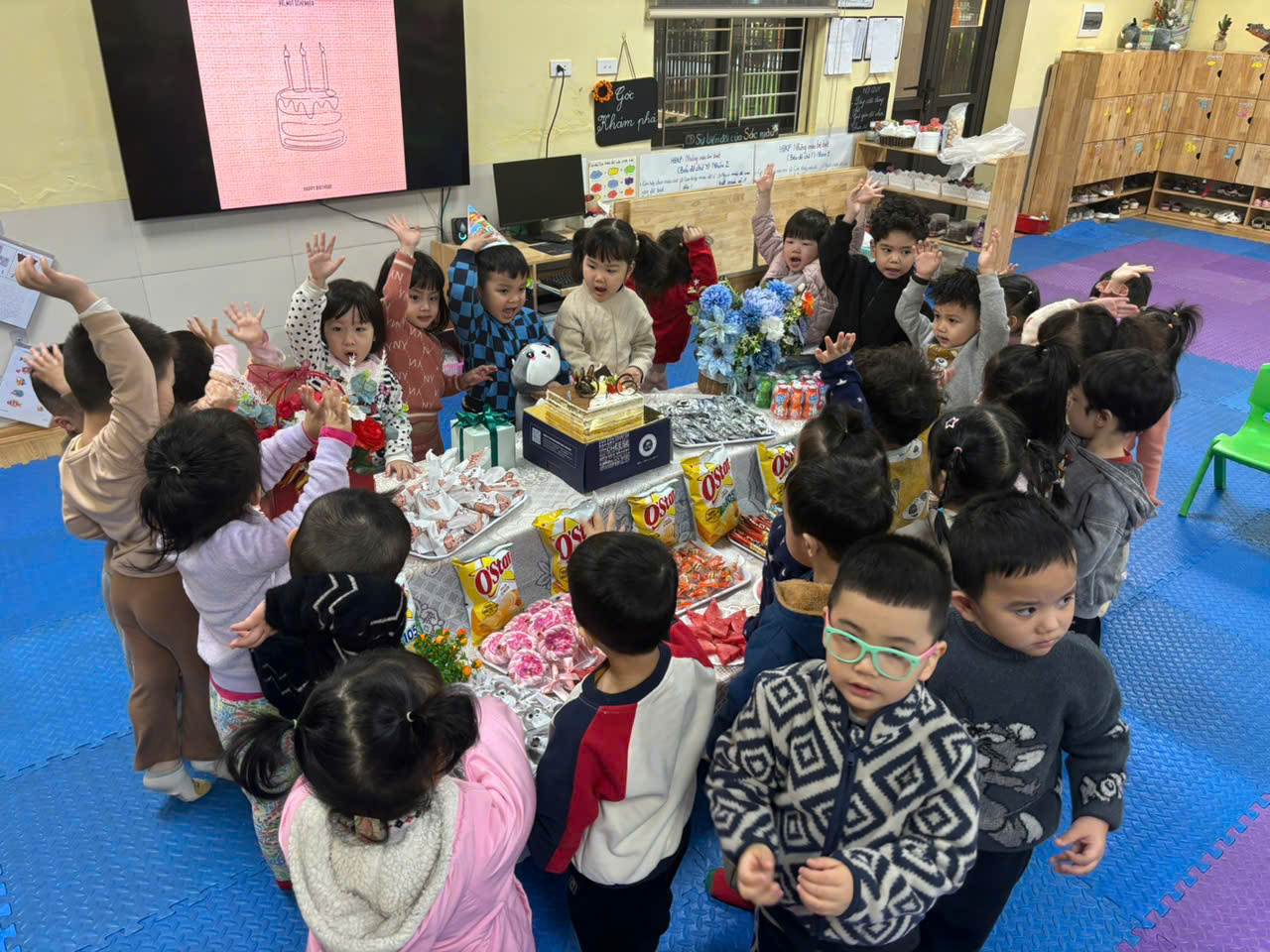Lớp mẫu giáo bé C3 tổ chức mừng sinh nhật cho các bé có ngày sinh trong tháng 2. Chúc các thiên thần nhỏ đón thêm tuổi mới với nhiều niềm vui, luôn khỏe mạnh và chăm ngoan học giỏi. Chúng mình cùng thổi nến chúc mừng sinh nhật các bạn nhé!