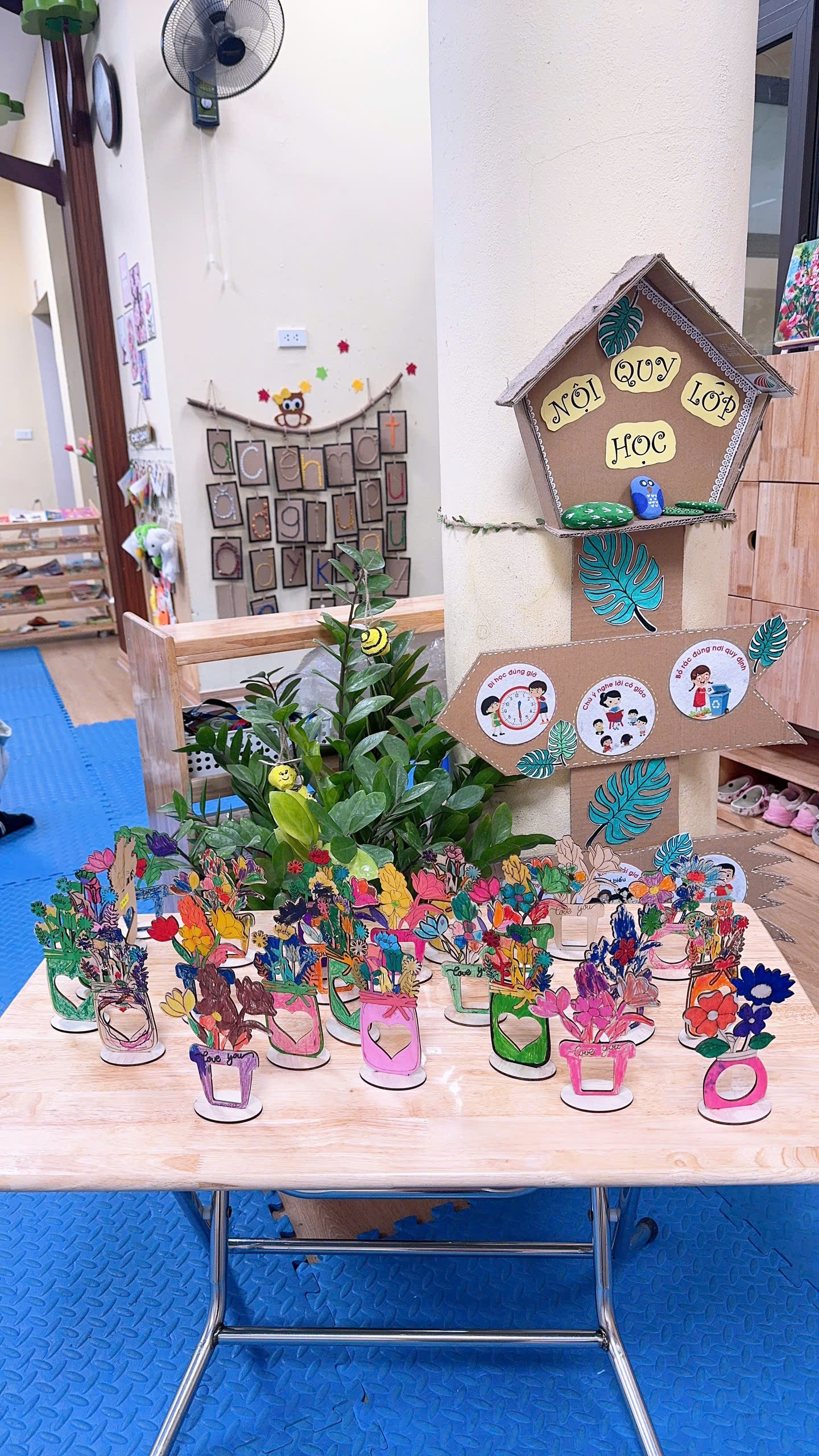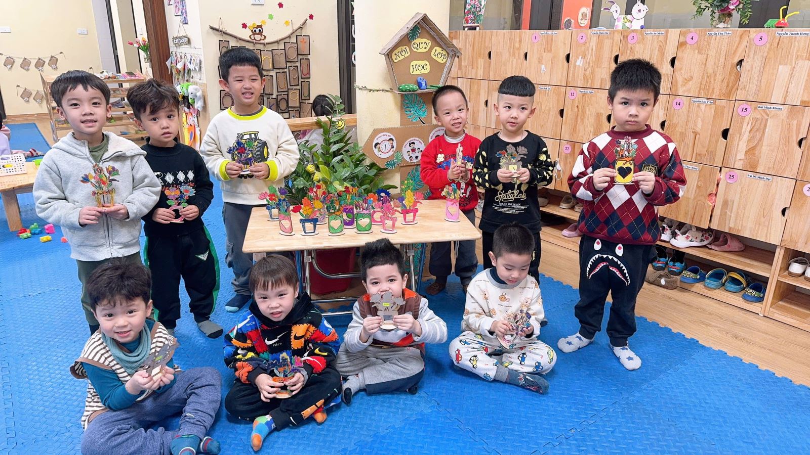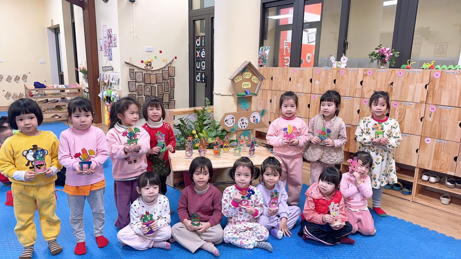 Đó là món quà của các con tuy nhỏ thôi, đơn giản nhưng rất đẹp và tươi sáng. Thể hiên tình yêu là sự hồn nhiên và ngây thơ chân thành của các bé muốn thể hiện tình yêu thương với bà - mẹ. Các con rất hào hứng muốn tự tay mình tô vẽ những thiêp hoa gỗ thật đẹp để tặng bà - mẹ. Chính vì vậy ngày hôm nay lớp MGN B2 đã tổ chức cho trẻ tham gia hoạt động “Làm hoa gỗ tặng bà và mẹ nhân ngày Quốc tế phụ nữ 8/3” trẻ được tự tay tô màu cho những tấm bưu thiếp thật đẹp để tặng bà, tặng mẹ. Sau đây là một số hình ảnh của các con: