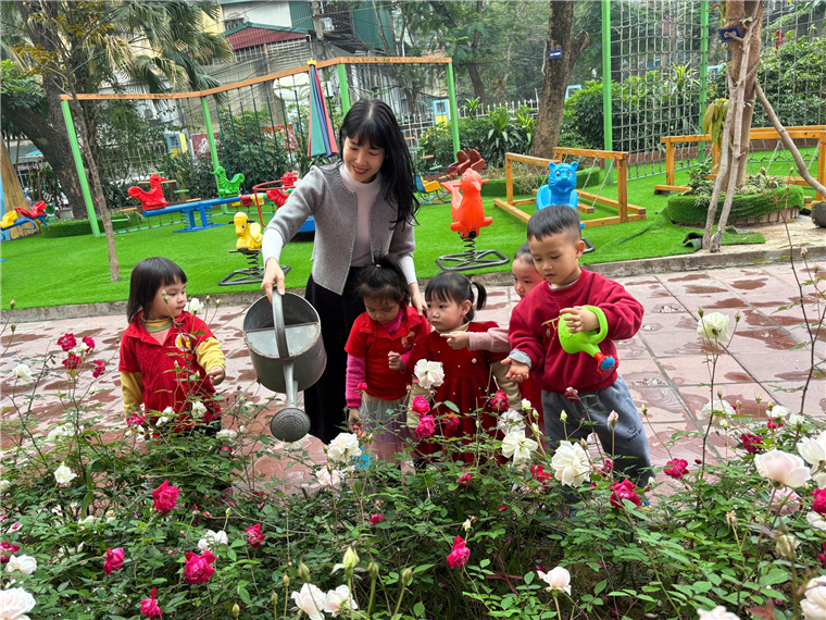 Các con cùng cô chăm sóc cây
