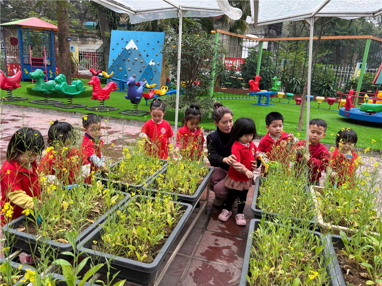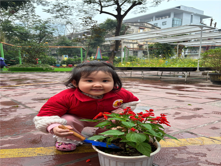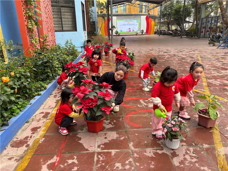 Sáng ngày 10/2/2025, các con lớp MGB C1 đã hăng hái tham gia hoạt động "Tết trồng cây - Đời đời nhớ ơn Bác Hồ" tại trường, một phong trào đầy ý nghĩa nhân dịp đầu xuân. Dưới sự hướng dẫn tận tình của Bác Hiệu trưởng Thanh Hoa, các con đã được trải nghiệm trực tiếp các công việc như tưới cây, vun xới và chăm sóc cây hoa trong khuôn viên trường.