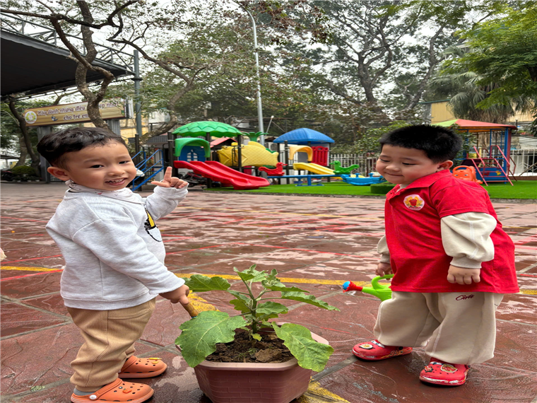 Kết thúc buổi hoạt động, các con lớp MGB C1 đã cùng nhau chụp những bức ảnh kỷ niệm bên vườn cây mới trồng, đầy hứng khởi và vui mừng. Hoạt động chăm sóc cây giúp các con phát triển tình yêu thiên nhiên mà còn rèn luyện cho các con tinh thần tập thể và sự kiên nhẫn trong việc chăm sóc cây cối.