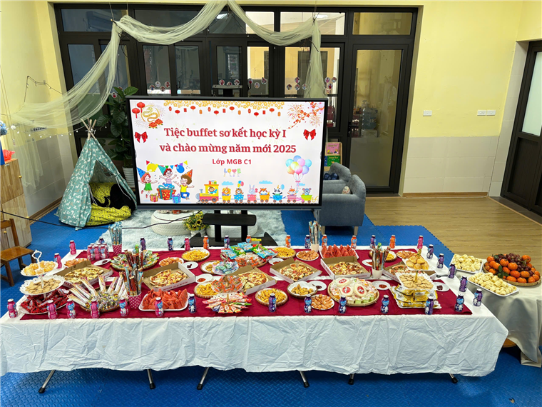 Lớp MGB C1 rộn ràng tổ chức buổi tiệc buffet liên hoan sơ kết học kỳ I và chào mừng năm mới 2025 .