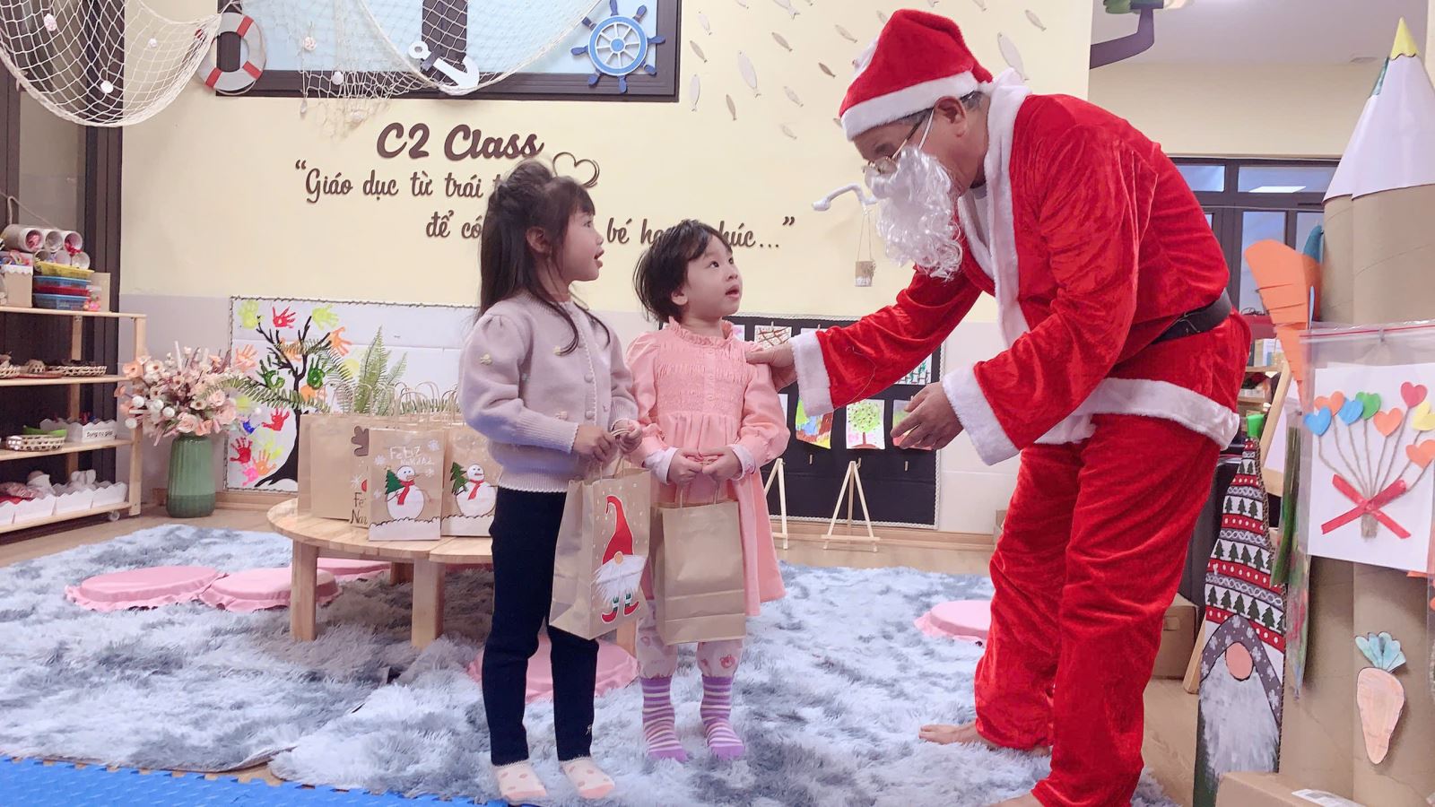 Không khí Giáng sinh vui vẻ ấm áp đã đến với tất cả các bạn nhỏ lớp C2 Trường Mầm non Tuổi Hoa. Trong tiết trời giá lạnh của buổi sáng mùa đông ngày Giáng sinh 24/12, ông già Noel dễ mến đã ghé đến lớp MGB C2 như một ông tiên với bộ râu dài trắng xóa. Ông thân thiện và hiền từ vui vẻ bắt tay xoa đầu từng em bé và trao cho các em những món quà yêu thương.
