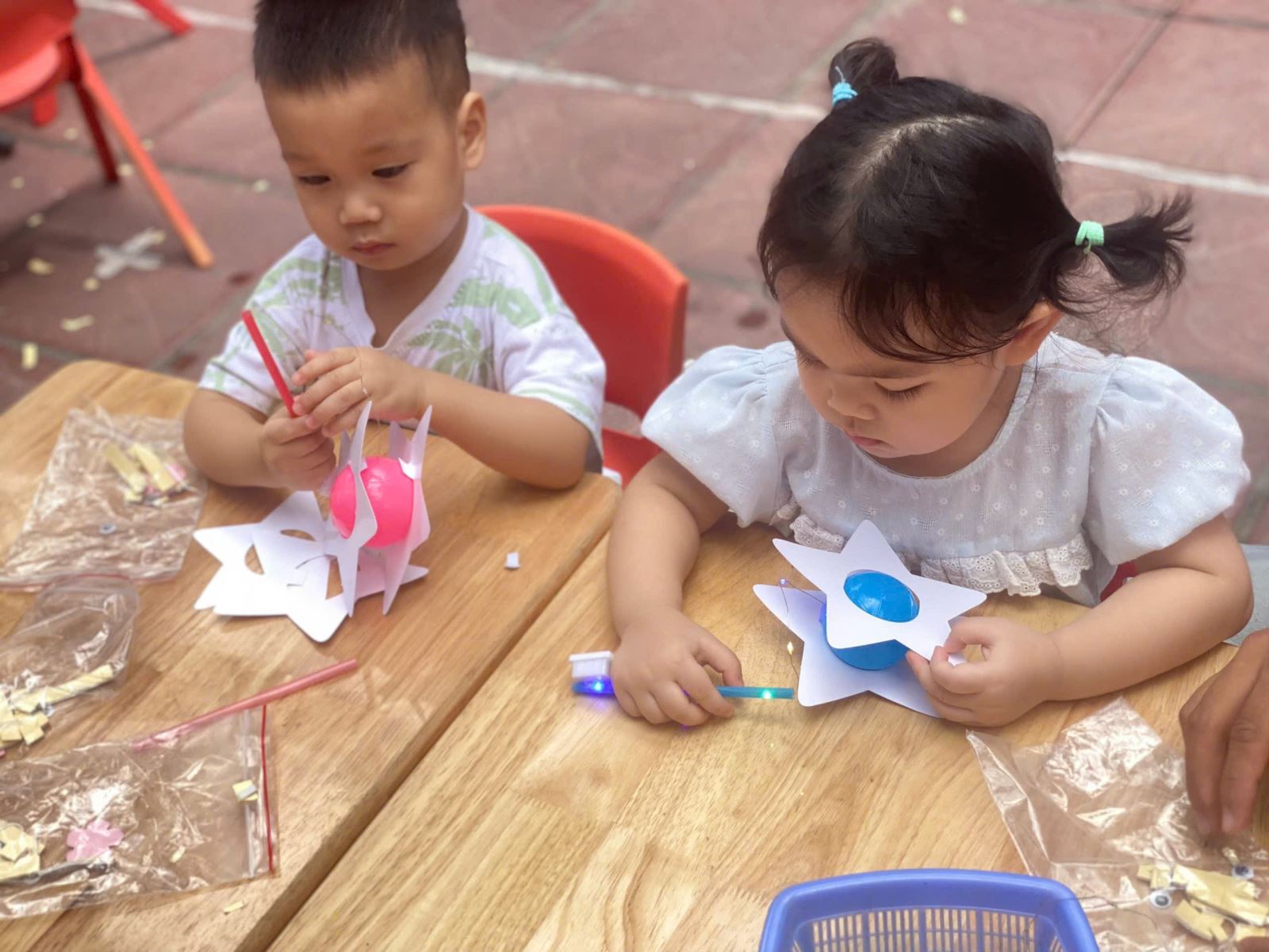 Các bé làm lồng đèn trung thu