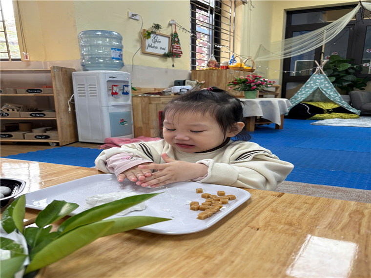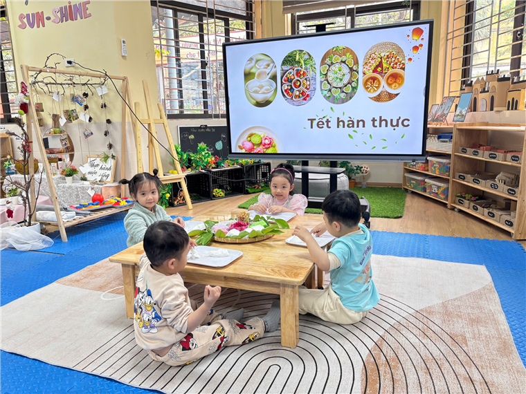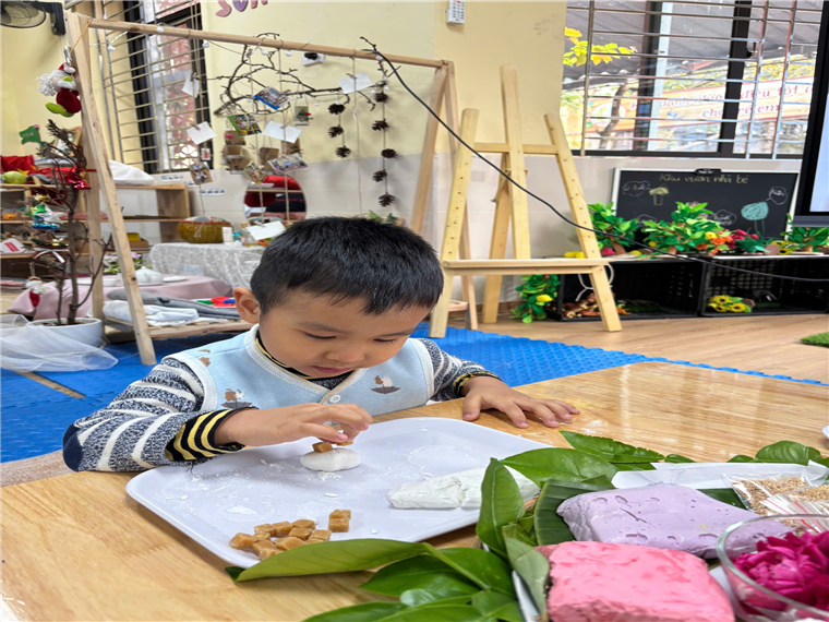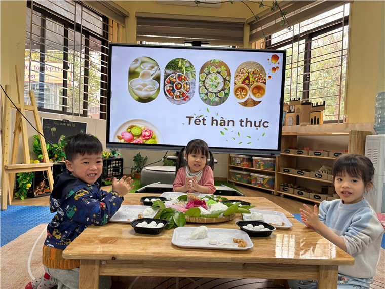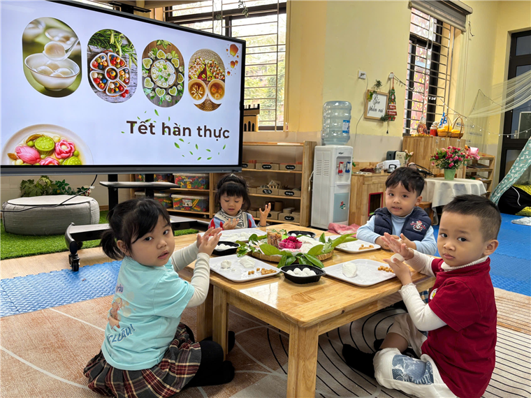 Thông qua hoạt động, các bé hiểu thêm về ý nghĩa văn hóa truyền thống của ngày Tết Hàn Thực và rèn luyện kỹ năng khéo léo và sự kiên nhẫn. Khi bánh được hoàn thành, niềm vui hiện rõ trên từng khuôn mặt nhỏ bé, các em hào hứng thưởng thức thành quả tự mình làm ra.