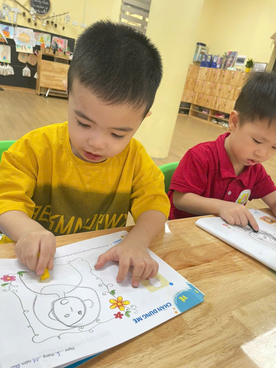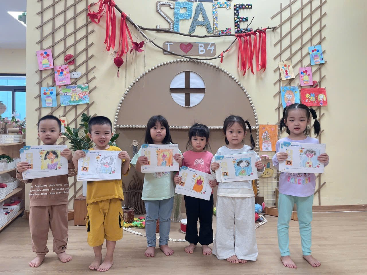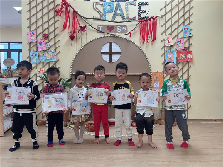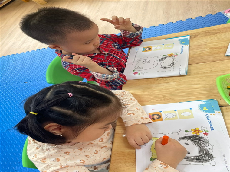 Cùng các bé lớp B4 vẽ chân dung mẹ.