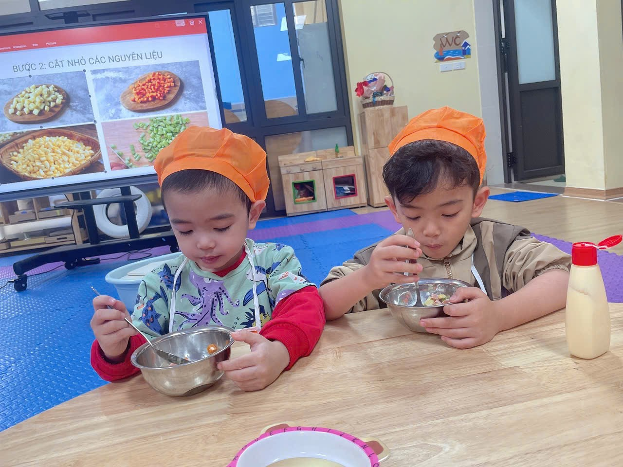 🥗 Một siêu phẩm đã ra đời, món Salad Nga trông thật ngon mắt. Các em bé của lớp B4 đã cùng nhau thưởng thức vô cùng ngon lành!
