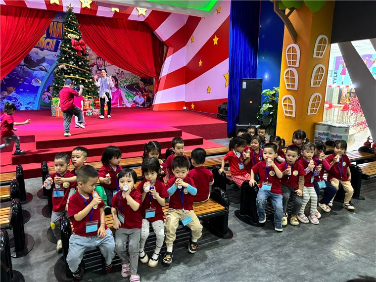 Các bé được hòa mình vào không gian sôi động, thỏa sức khám phá và vui đùa bên bạn bè. Sự đồng hành nhiệt tình của các cô giáo đã mang lại cho các bé một ngày đầy ắp niềm vui và những kỷ niệm tuyệt vời. Chắc chắn, đây sẽ là những trải nghiệm khó quên, giúp các bé phát triển kỹ năng xã hội và thể chất.