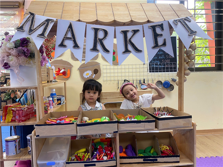Bé chơi tại góc bán hàng
