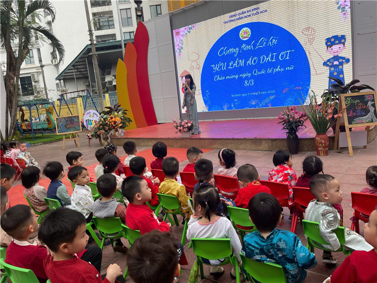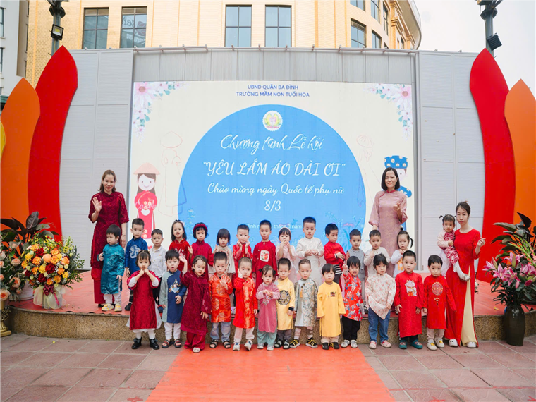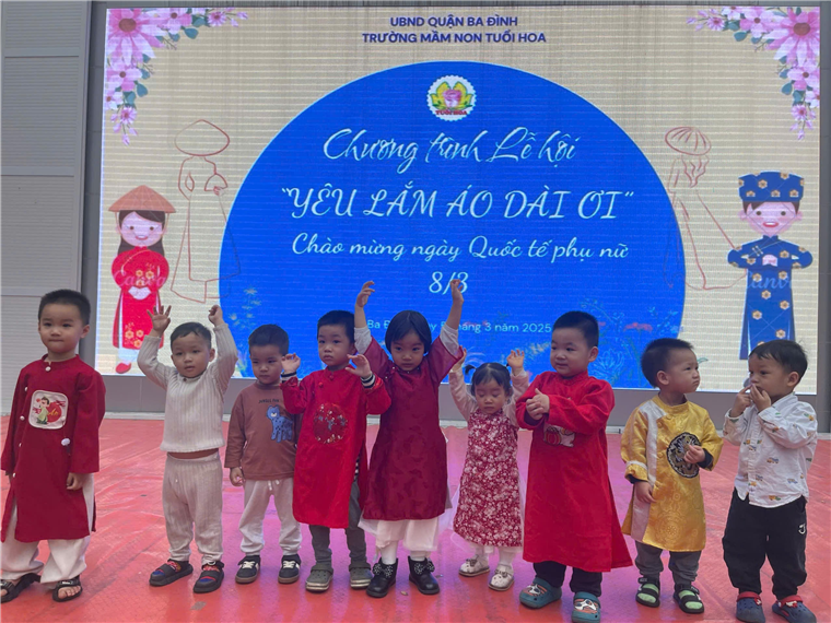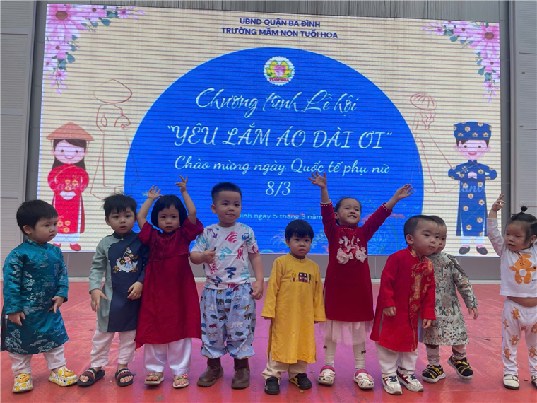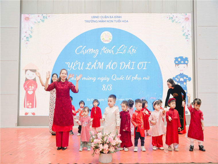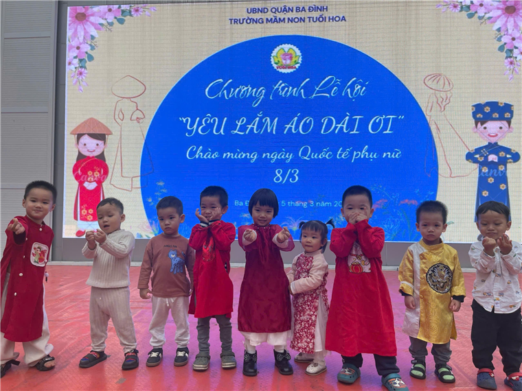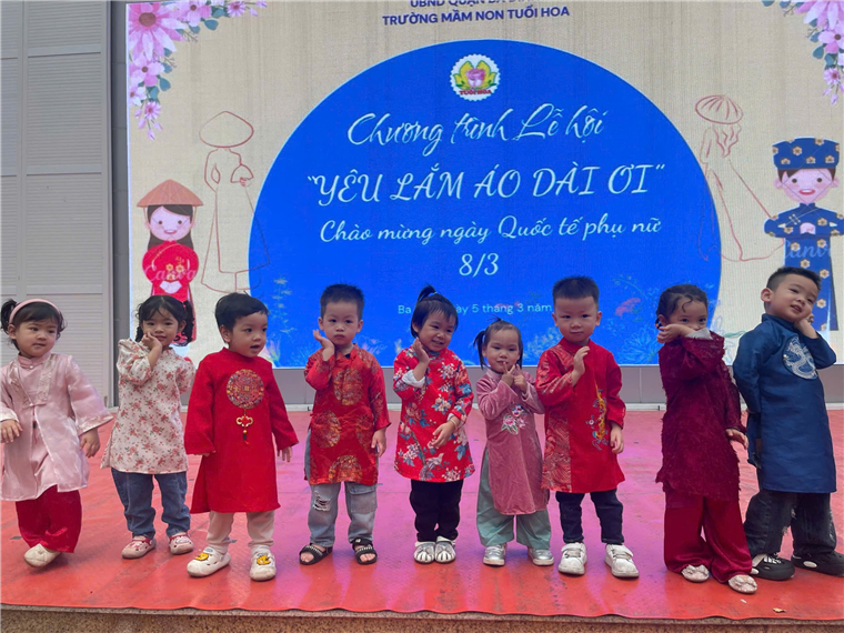 Vào sáng ngày 5/3, các bé lớp D2 trường Mầm non Tuổi Hoa đã tham gia chương trình "Yêu Lắm Áo Dài Ơi" – một sự kiện ý nghĩa nhằm kỉ niệm ngày Quốc tế Phụ nữ 8-3. Chương trình đã mang đến những trải nghiệm thú vị mà còn giúp các em bé thêm yêu tà áo dài Việt Nam.