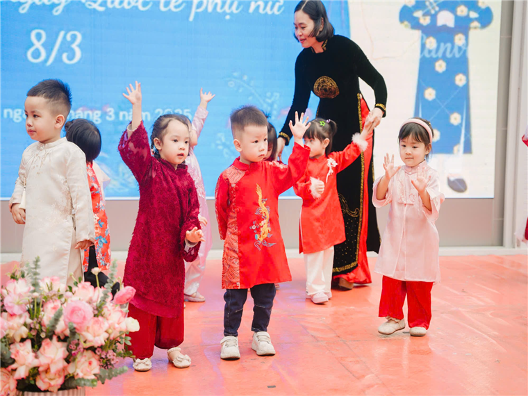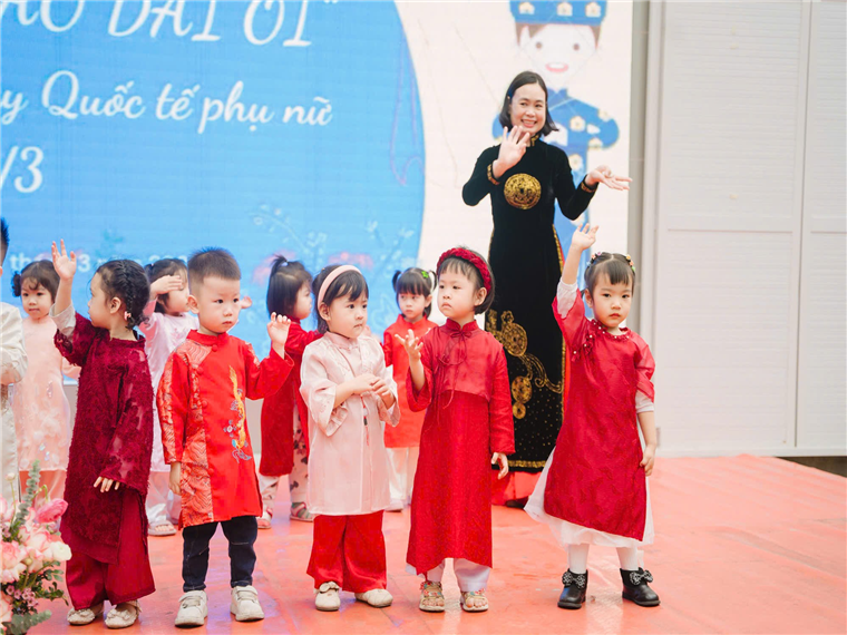 Chương trình diễn ra với nhiều hoạt động hấp dẫn như trình diễn thời trang áo dài, đồng diễn văn nghệ và trò chuyện cùng cô giáo về ý nghĩa của chiếc áo dài trong đời sống người Việt. Đặc biệt, phần trình diễn thời trang của các em bé lớp D2 đã nhận được rất nhiều sự cổ vũ từ các bạn và các cô trong nhà trường. Các bé tự tin sải bước trên sân khấu, khoe những bộ áo dài xinh xắn, thể hiện niềm tự hào về trang phục truyền thống.