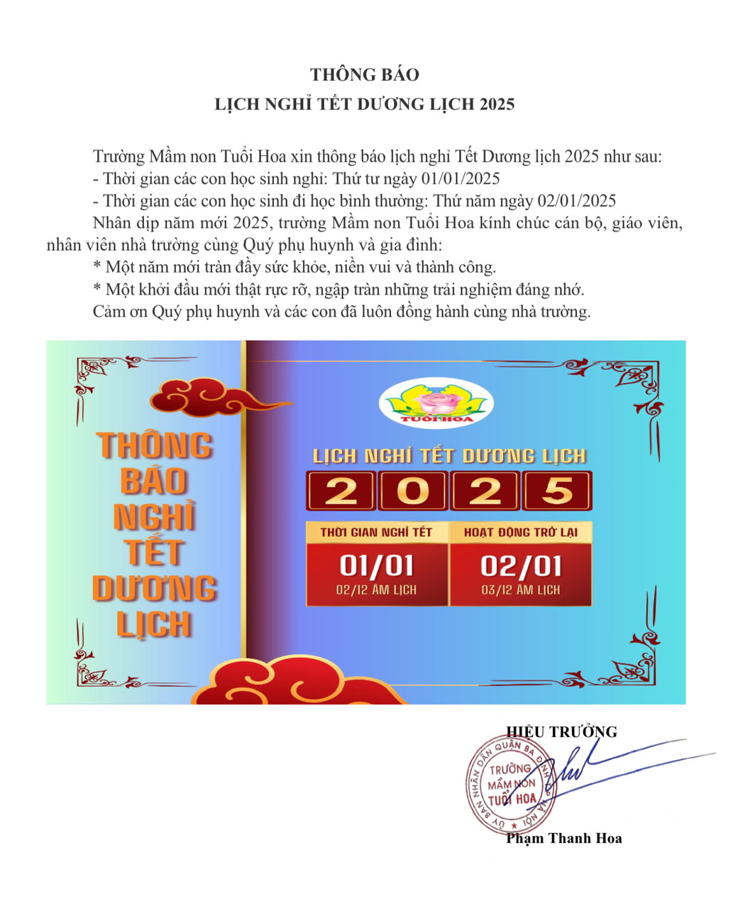 THÔNG BÁO LỊCH NGHỈ TẾT DƯƠNG LỊCH 2025