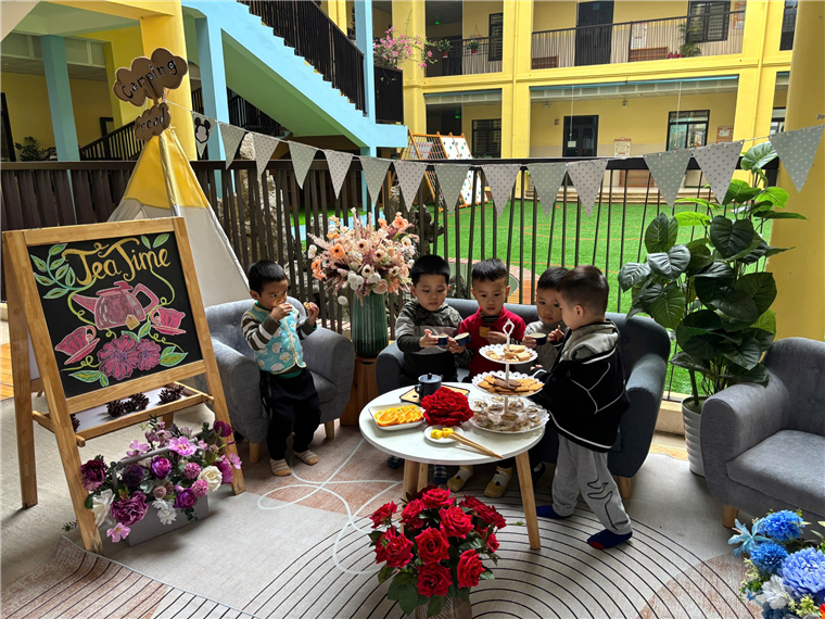 Hôm nay, lớp MGB C1 đã tổ chức một buổi tiệc trà thật đặc biệt, mang lại không khí vui tươi, ấm áp cho các con, Các hoạt động trong buổi tiệc được các cô giáo chuẩn bị rất tỉ mỉ, không gian, những chén trà, chiếc bánh đến từng chi tiết nhỏ đã được các cô giáo khéo léo trang trí sắp xếp cẩn thận, những chiếc bánh kem ngọt ngào, đầy màu sắc với hoa quả tươi ngon được cắt tỉa rất đáng yêu. Mỗi chiếc bánh là một tác phẩm nhỏ xinh, được chăm chút tỉ mỉ để các con có thể thưởng thức một cách trọn vẹn.