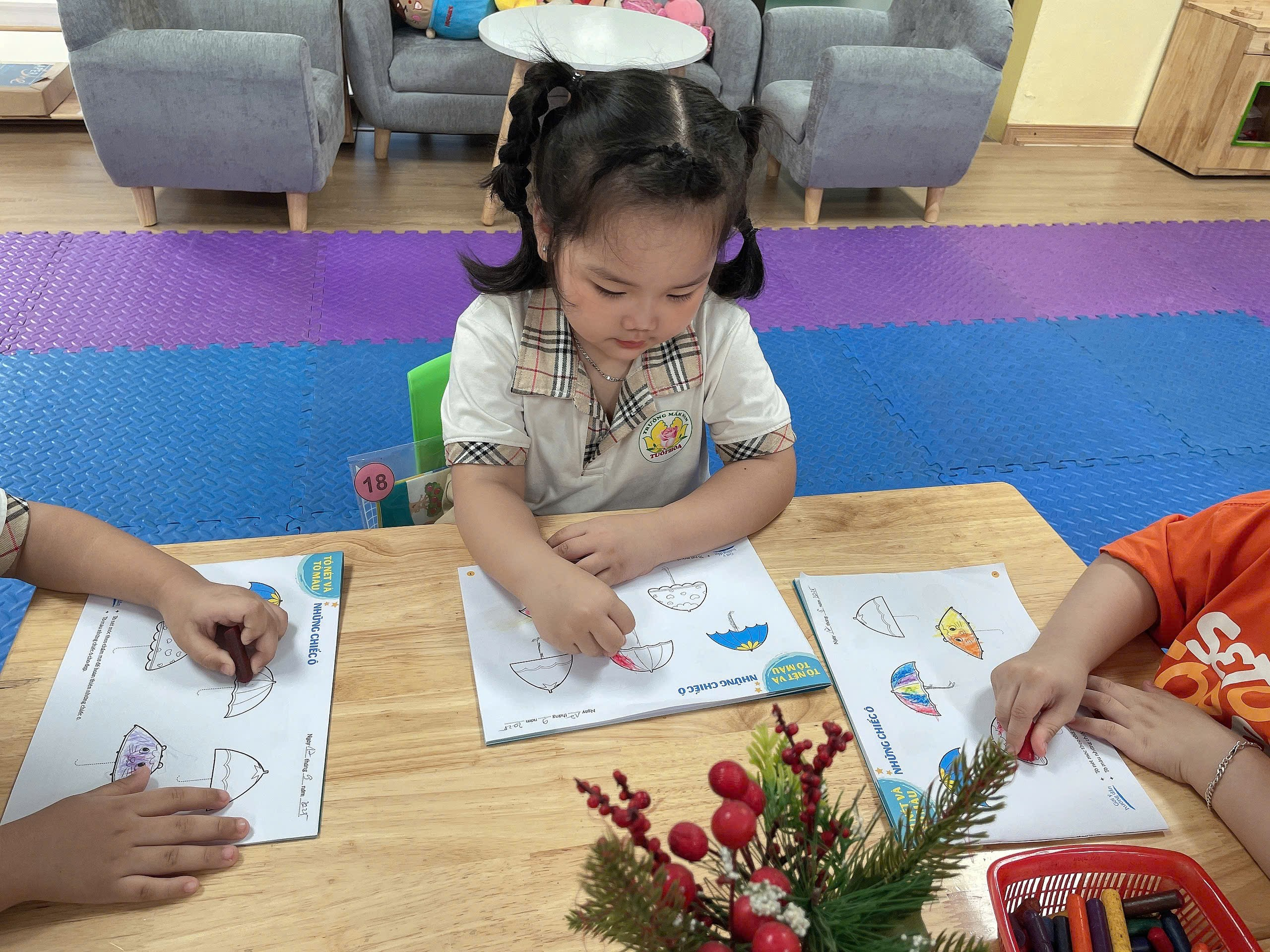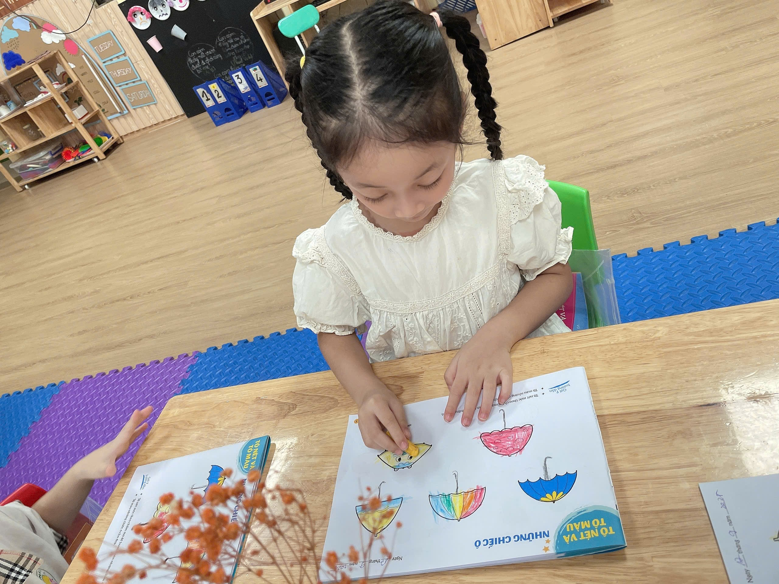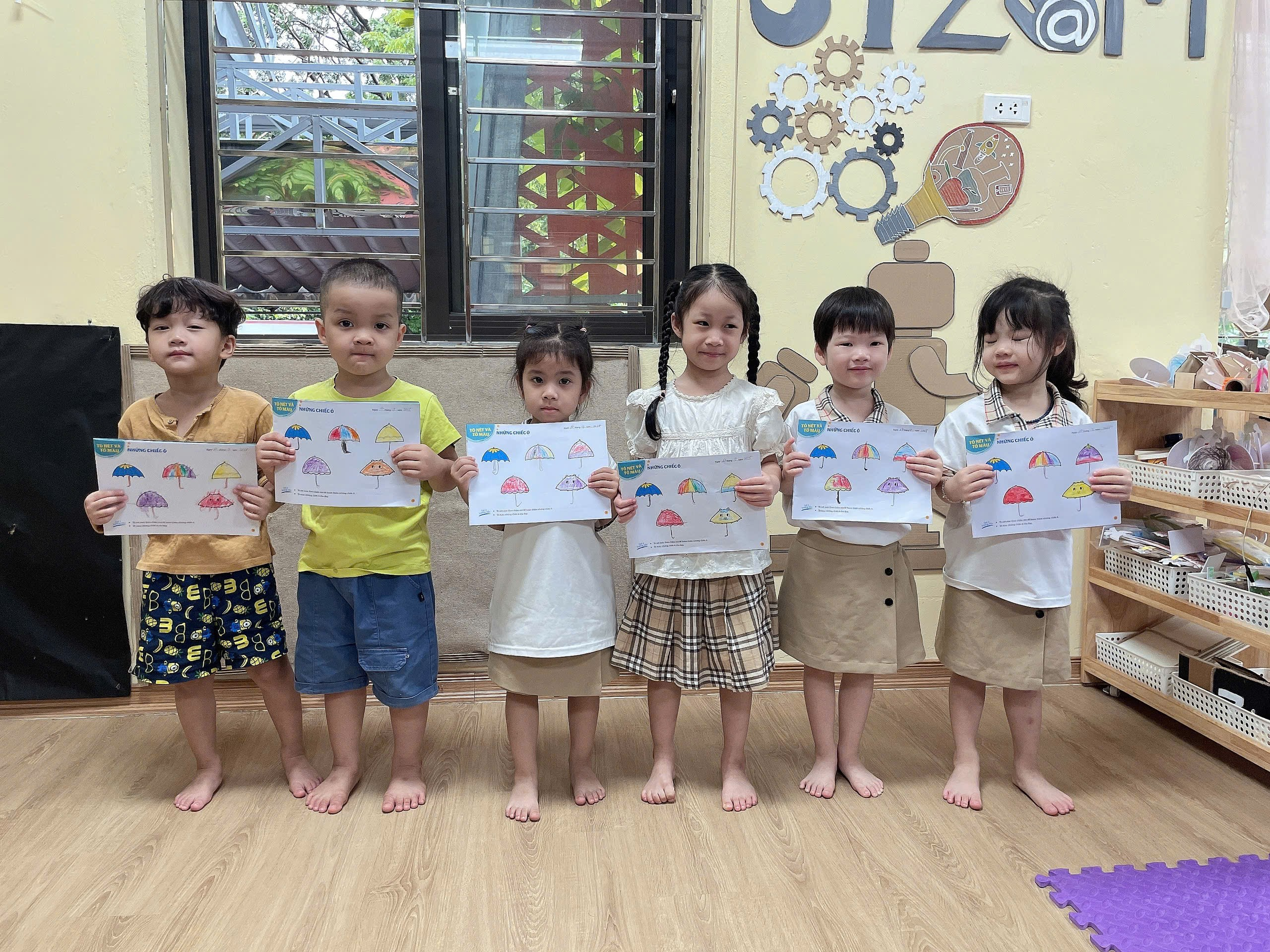 Hôm nay, các bạn nhỏ lớp Mẫu giáo Nhỡ B3 sẽ không chỉ vẽ một chiếc ô như mọi khi, mà sẽ "hóa thân" thành những nghệ sĩ tài ba, tô vẽ chiếc ô theo phong cách của riêng mình! Hãy tưởng tượng mình đang đứng dưới một cơn mưa nhẹ, tay cầm chiếc ô đầy màu sắc, sẵn sàng xua tan cơn mưa và mang lại niềm vui cho thế giới quanh mình!