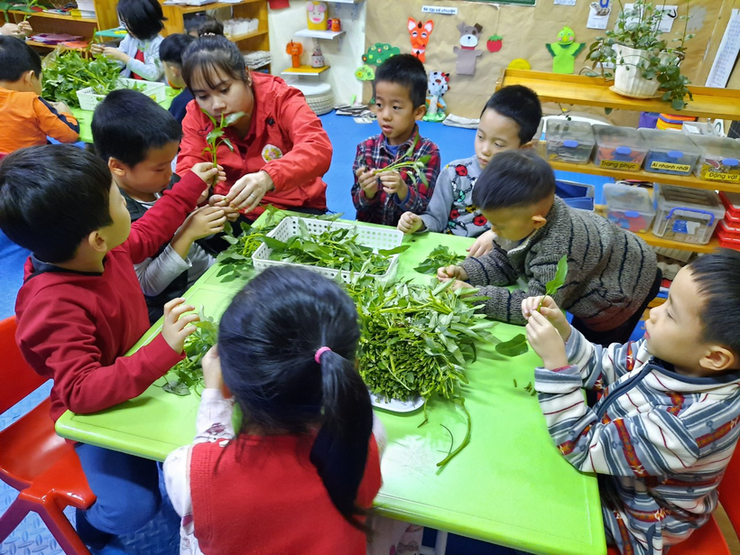 Bé làm nội trợ " Kỹ năng nhặt rau muống " lớp MGL A1