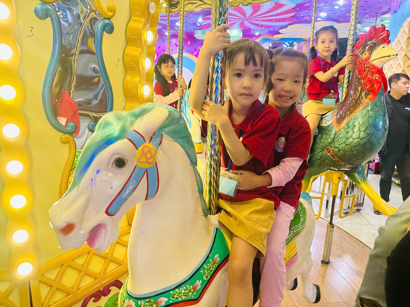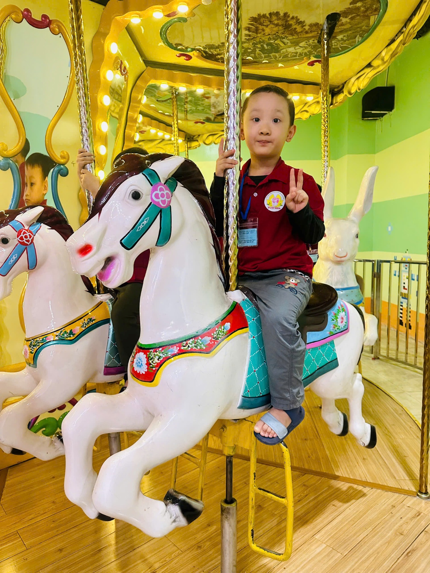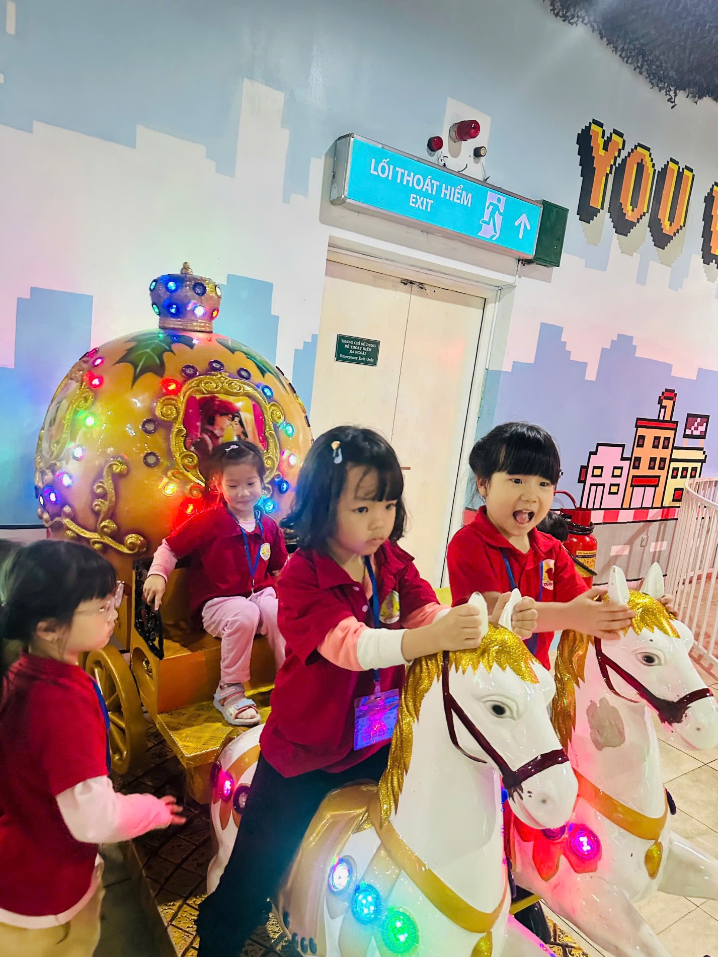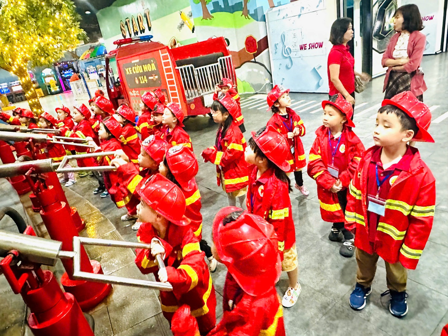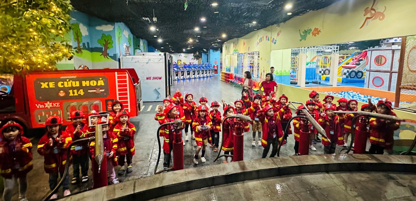 Sáng 6/12/2024 Các con lớp A4 được đi tham quan vui chơi trải nghiệm trong một không gian rộng lớn, thỏa sức sáng tạo với những nghề nghiệp định hướng tương lai như Lính cứu hỏa, Bác sĩ nha khoa, Công an, Họa sỹ, thoả sức với những trái bóng , trẻ đươc tham gia các trò chơi hấp dẫn: siêu xe, vòng quay sắc màu, chơi vận động khác tại Vinke- Time City