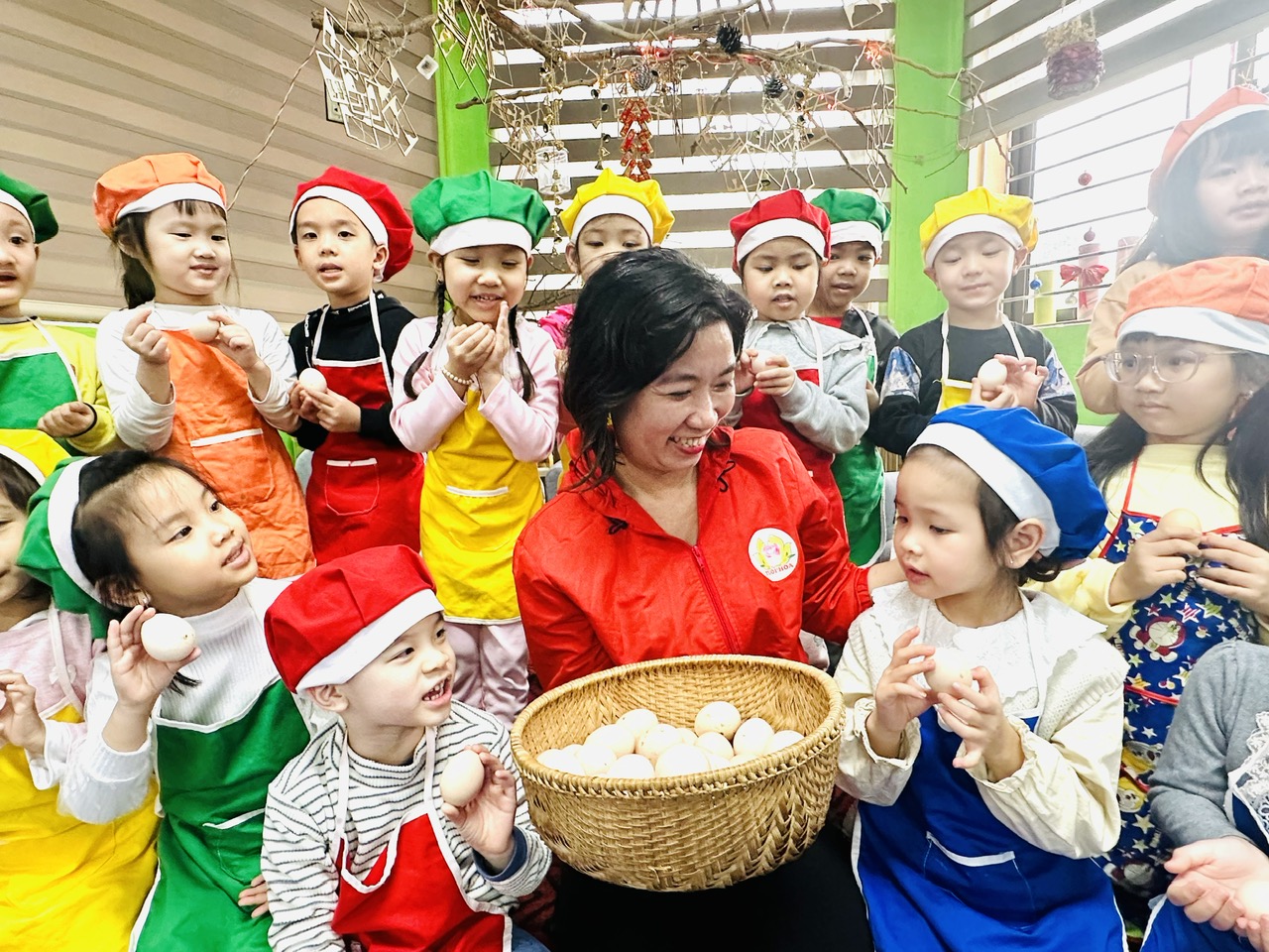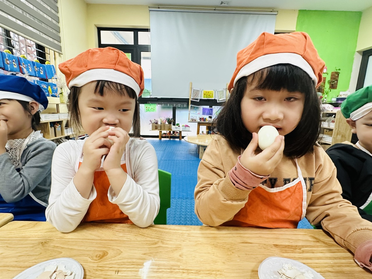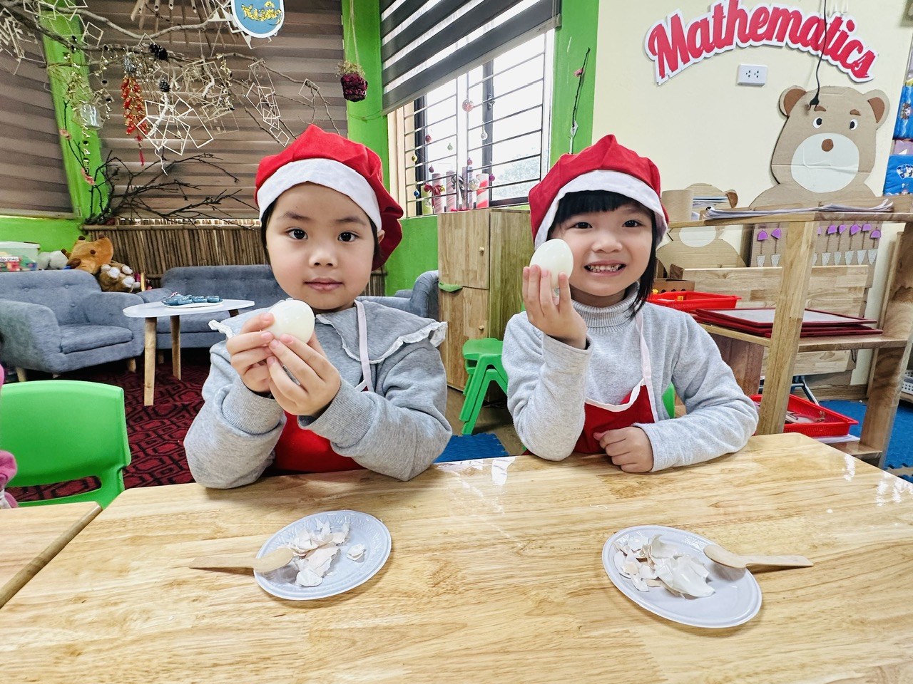 Các bạn nhỏ thưởng thức thành quả là những quả trứng do các bạn tự tay bóc.
