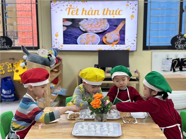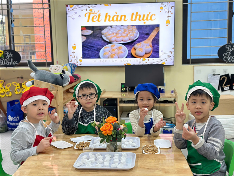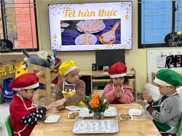 Dưới đây là một số hình ảnh của các bé trong hoạt động trải nghiệm “Bé vui Tết Hàn Thực”: