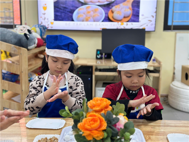 Viên bột tròn xoe qua bàn tay khéo léo của các con