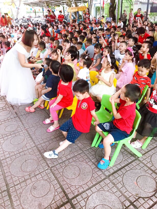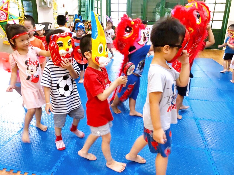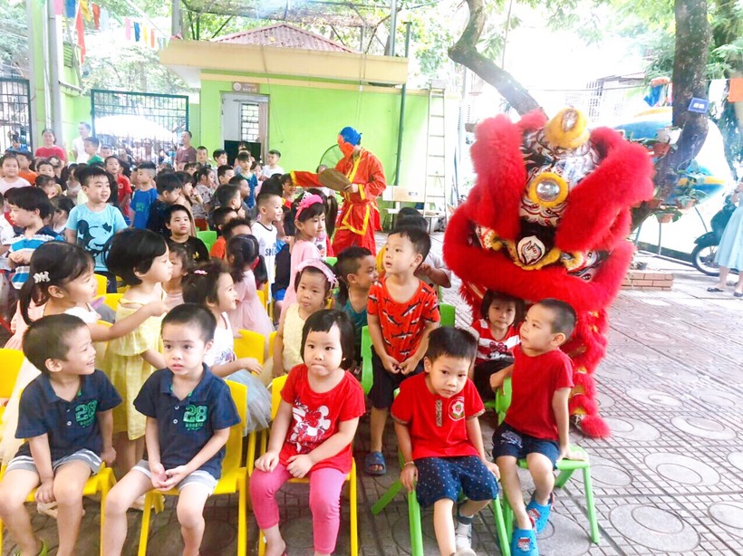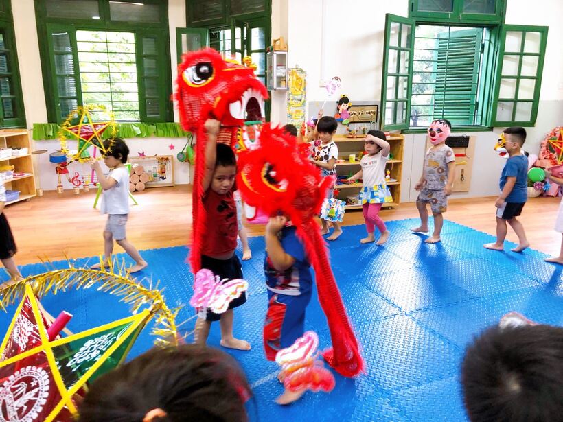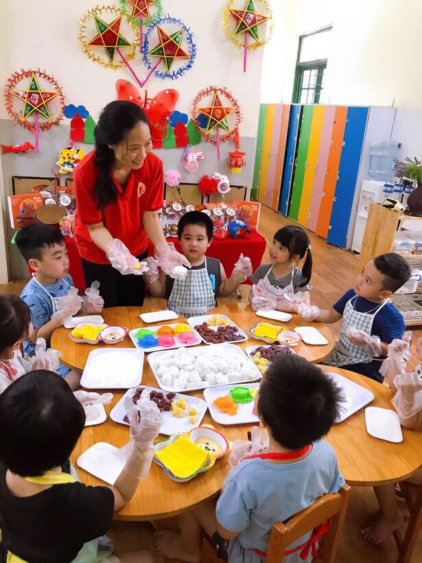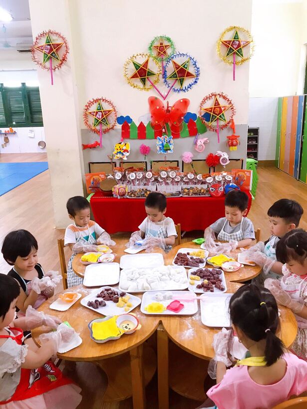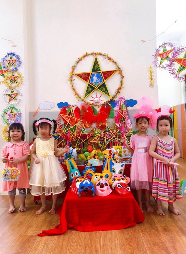 Các bạn nhỏ đến trường trong ngày này rất háo hức bởi ai cũng có một chiếc đèn lồng, đèn ông sao, mặt nạ... để vui chơi rước đèn trung thu trong lớp với bạn, được trải nghiệm tự mình làm ra chiếc bánh dẻo đủ các hình xinh xắn, ngộ nghĩnh với các vị nhân bánh thơm ngon như đậu xanh, đậu đỏ, khoai môn. Ngoài ra, các con còn được chơi lễ hội trung thu dưới sân trường với rất nhiều các hoạt động thú vị: Cùng nhau múa hát các bài hát trung thu thật hay như: Rước đèn tháng 8, Hội trăng rằm, Đêm Trung thu,…Bất ngờ hơn cả là sự xuất hiện của chị Hằng Nga xinh đẹp, chú Cuội đáng yêu đến góp vui bằng những trò chơi vui nhộn hấp dẫn và phát quà bánh cho các bạn nhỏ. Cuối cùng là xem múa lân và cùng nhau đi rước đèn quanh mâm cỗ trong tiếng trống vang thùng thình thùng thình.