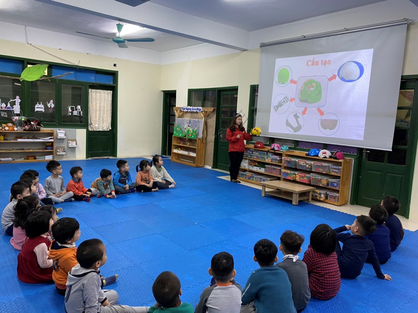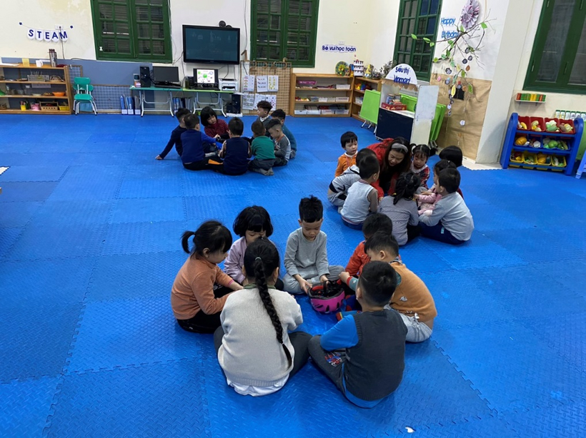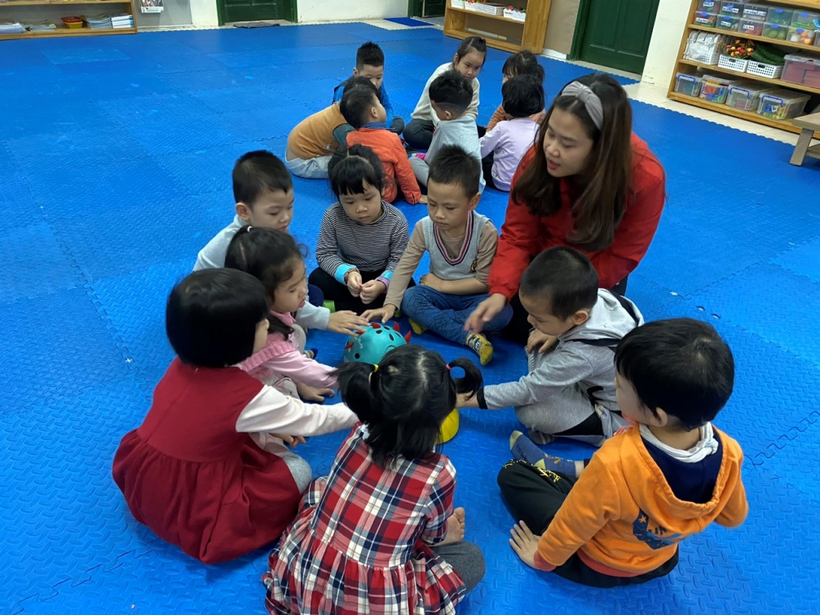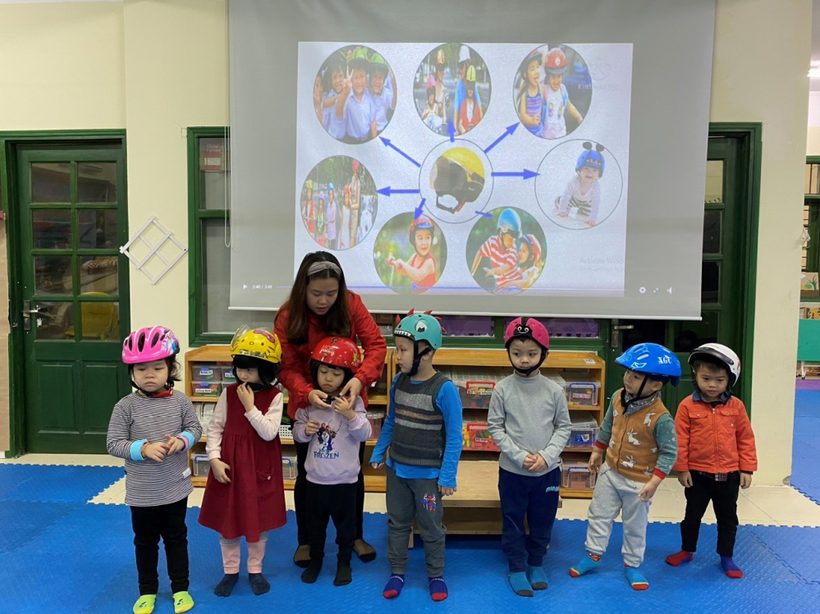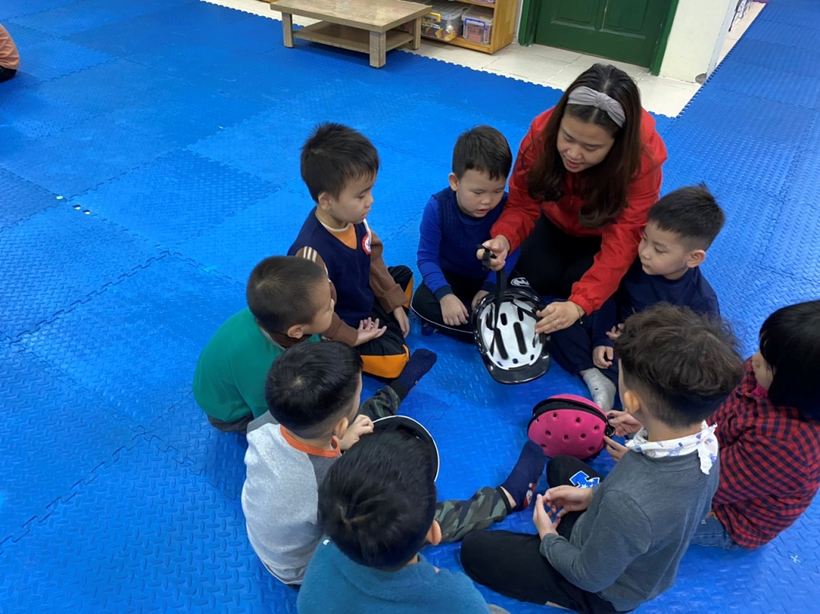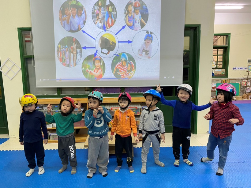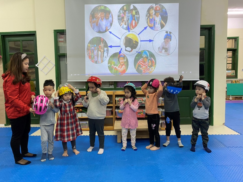 Lớp mẫu giáo nhỡ B2 tìm hiểu chiếc mũ bảo hiểm rất vui…!